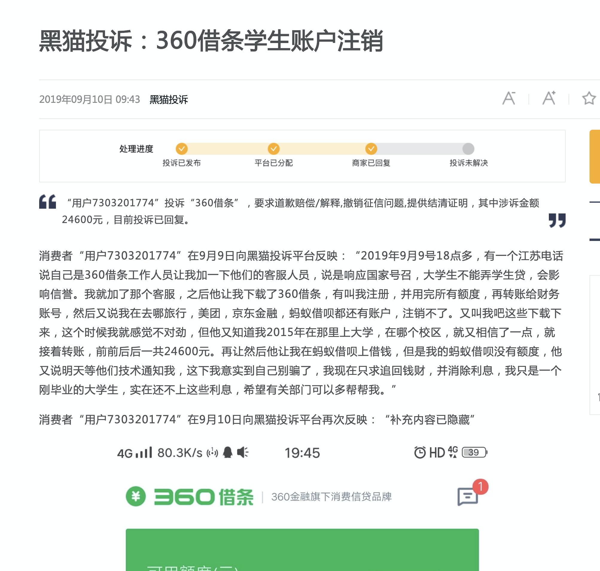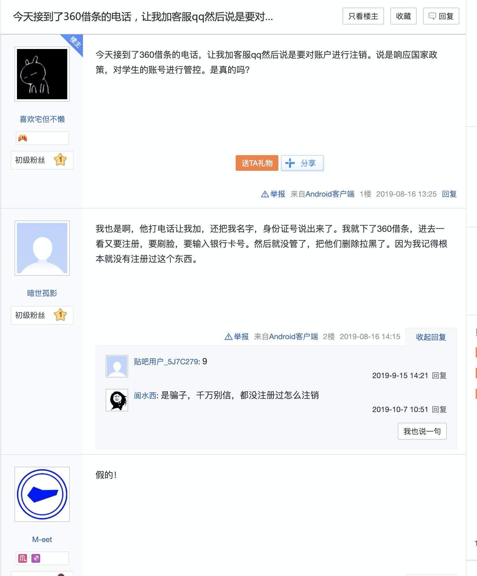 - "360借条学生账户注销"是骗局。不要信。
