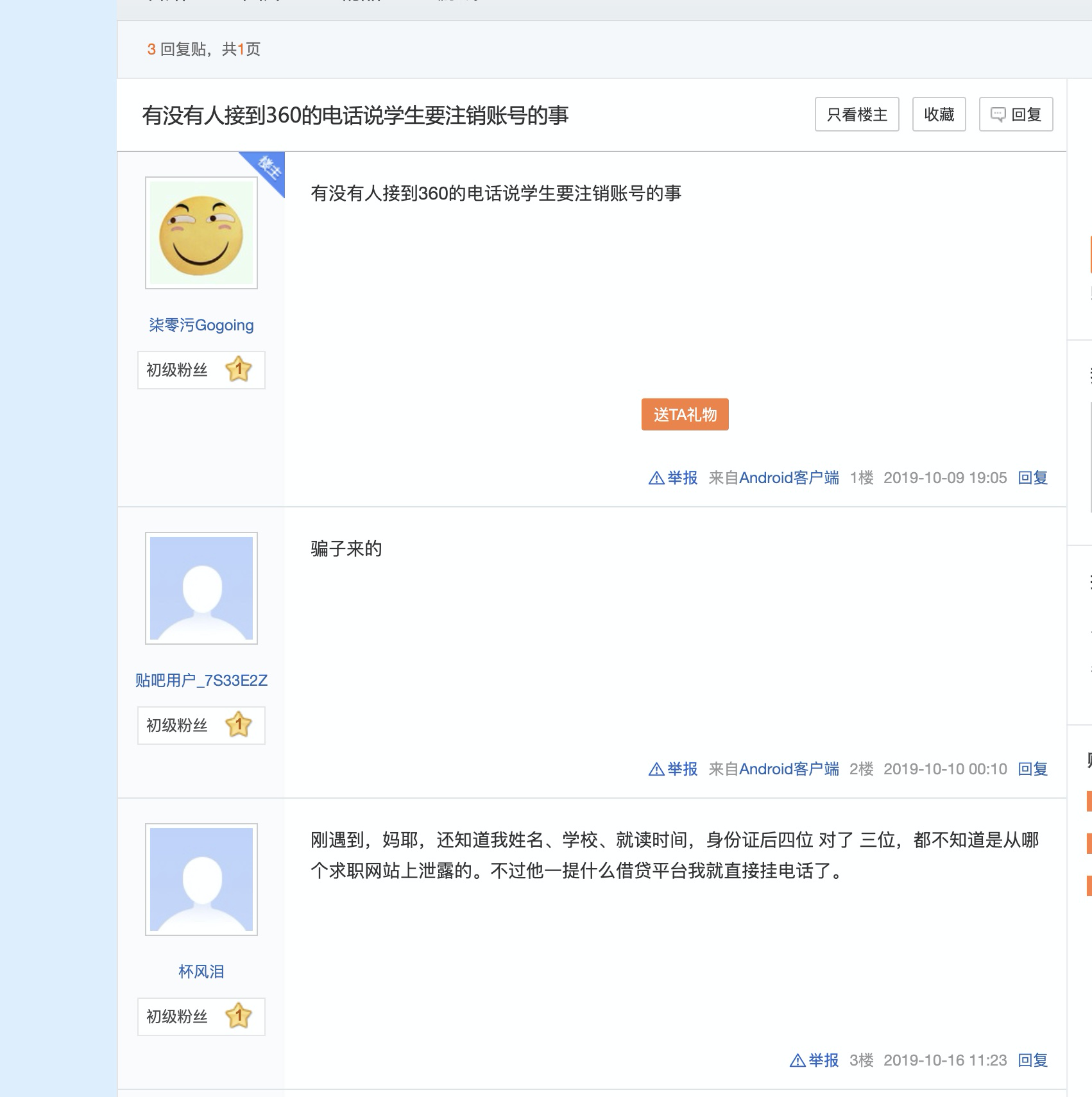 注意看发帖时间都是2019年10月份