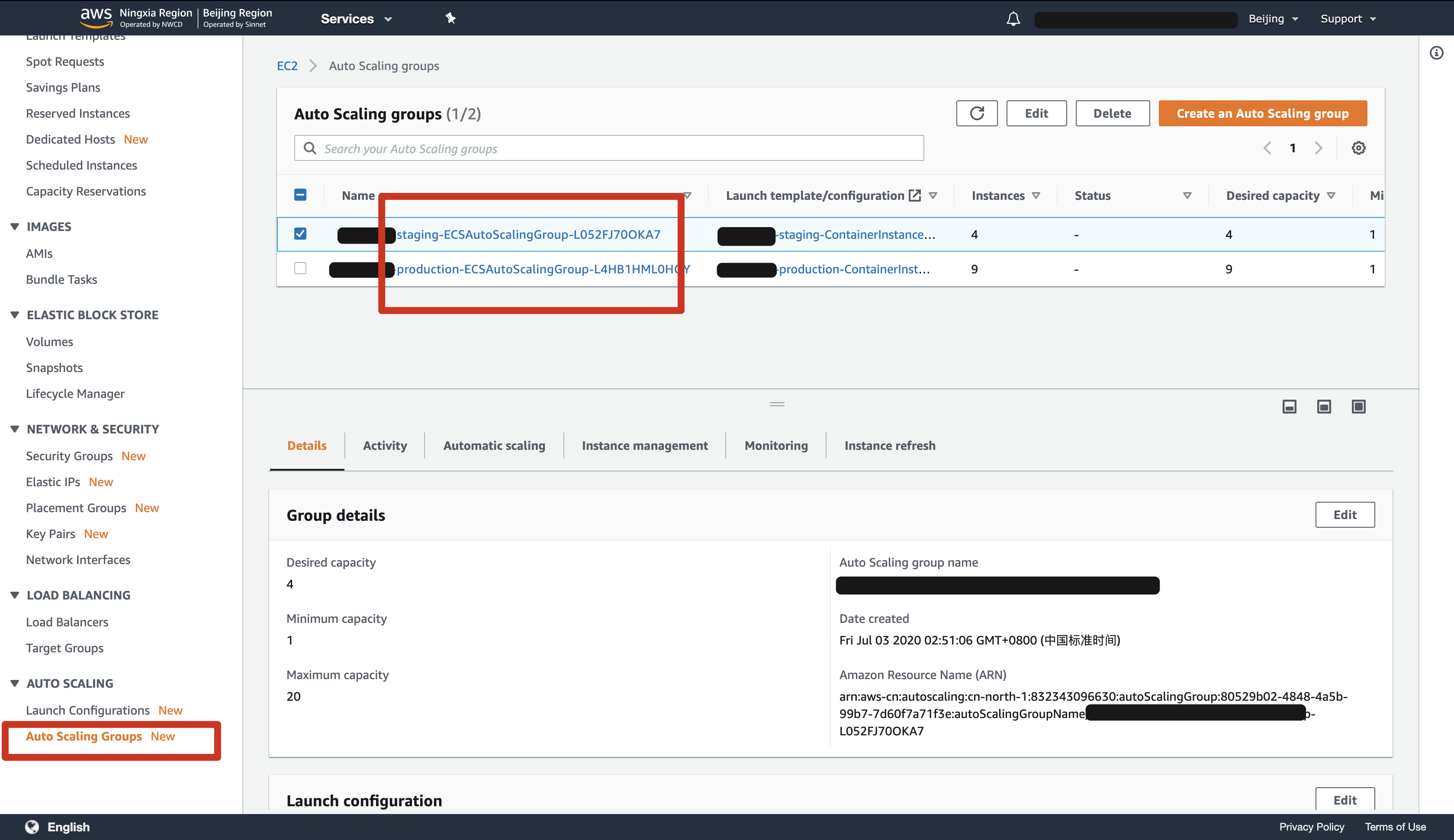 点击上图 ASG 中的蓝色 ECSAutoScalingGroup-L052... 会到这里: