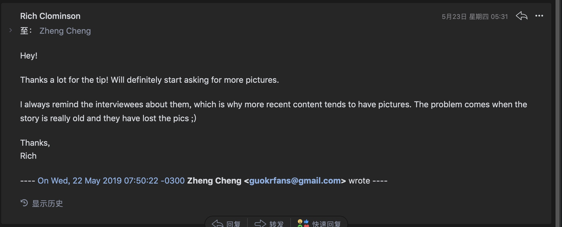 2个问题我都发邮件和创始人 Rich 沟通了