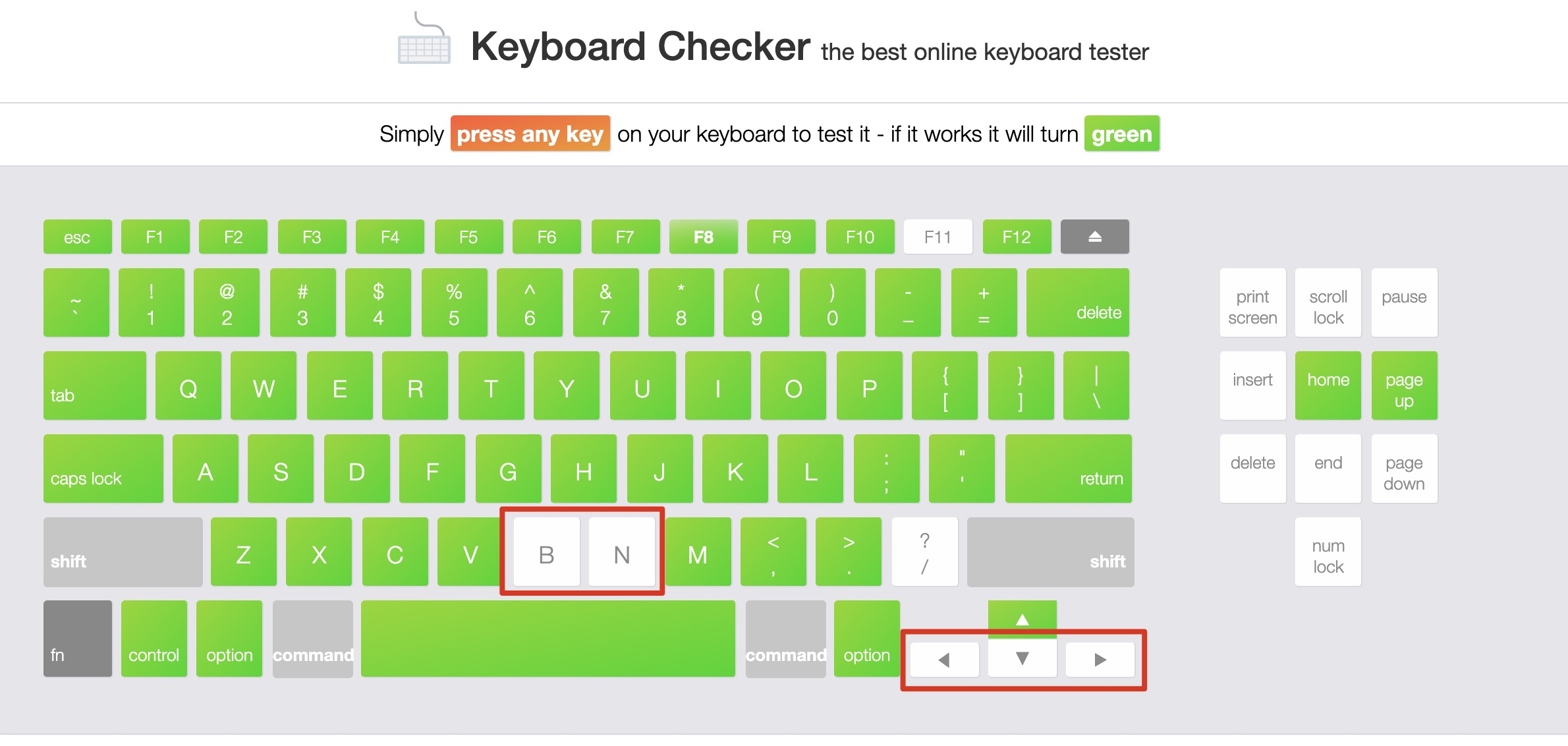 B,N,左箭头,下箭头,右箭头,5个键坏了。