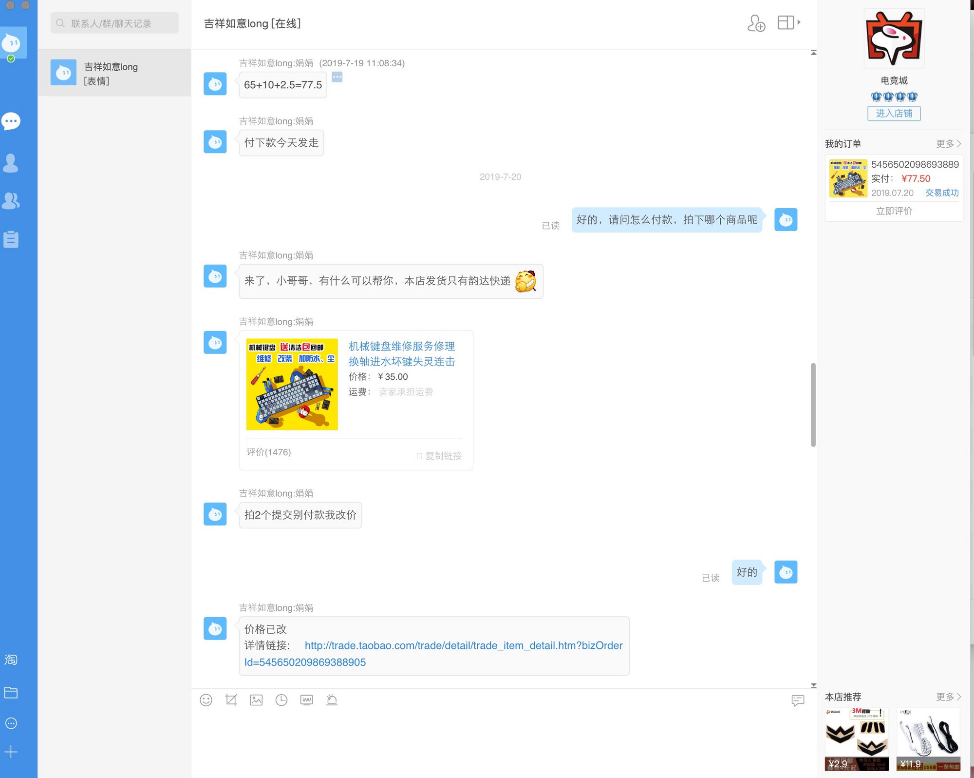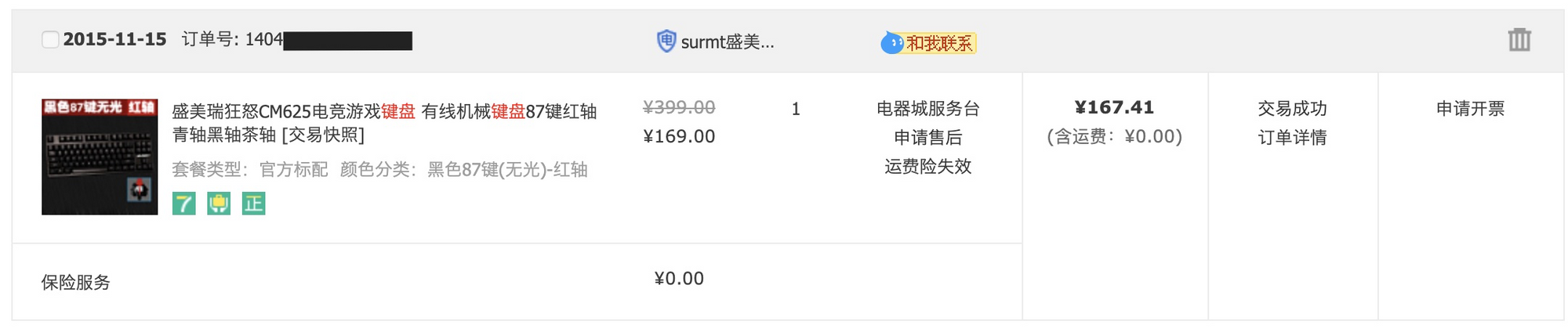 自己坏的,找淘宝店家共花了77.5元+11天时间修好。 - 我之前买过什么键盘