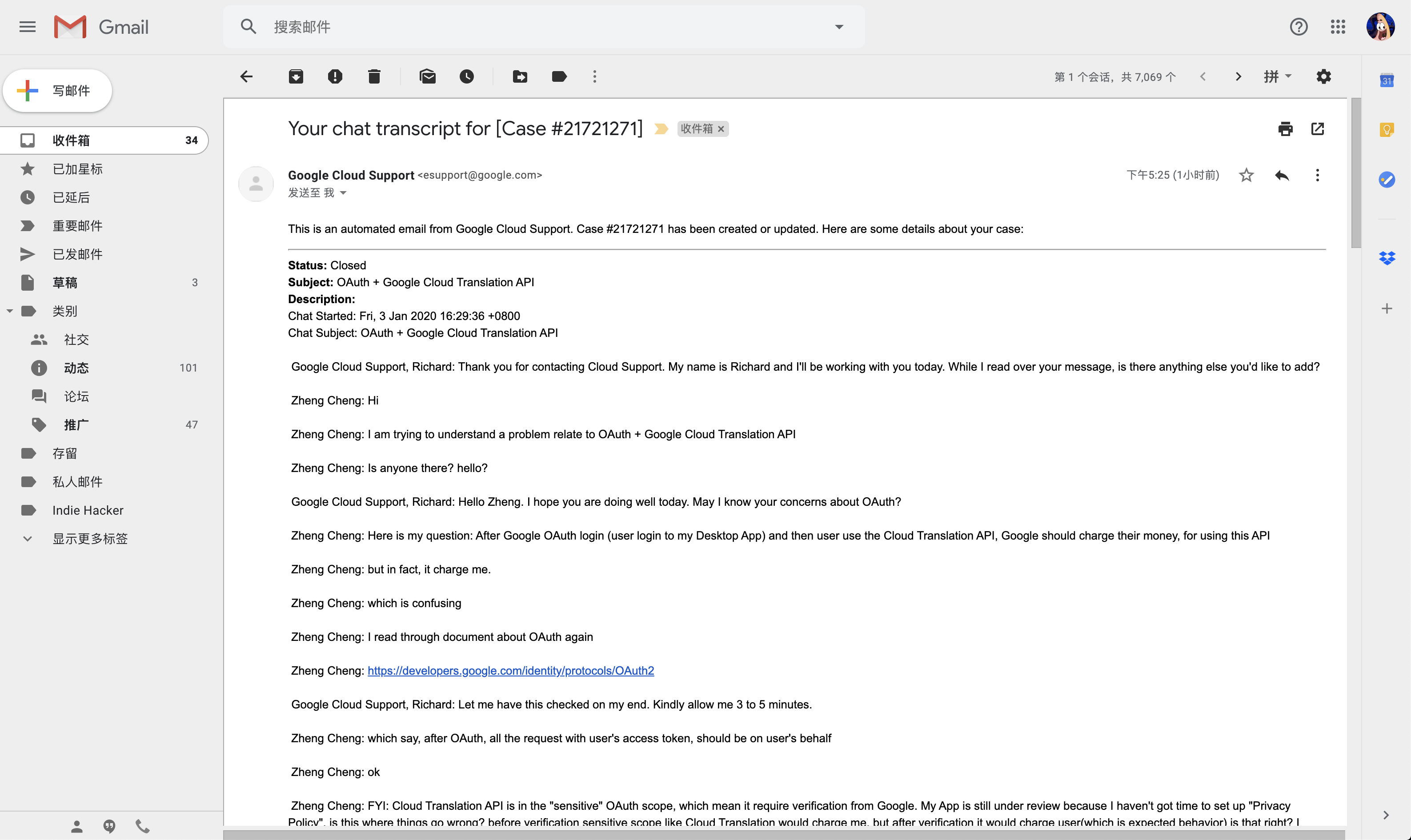 Google Cloud Support, Richard: Hello Zheng. I hope you are doing well today. May I know your concerns about OAuth?