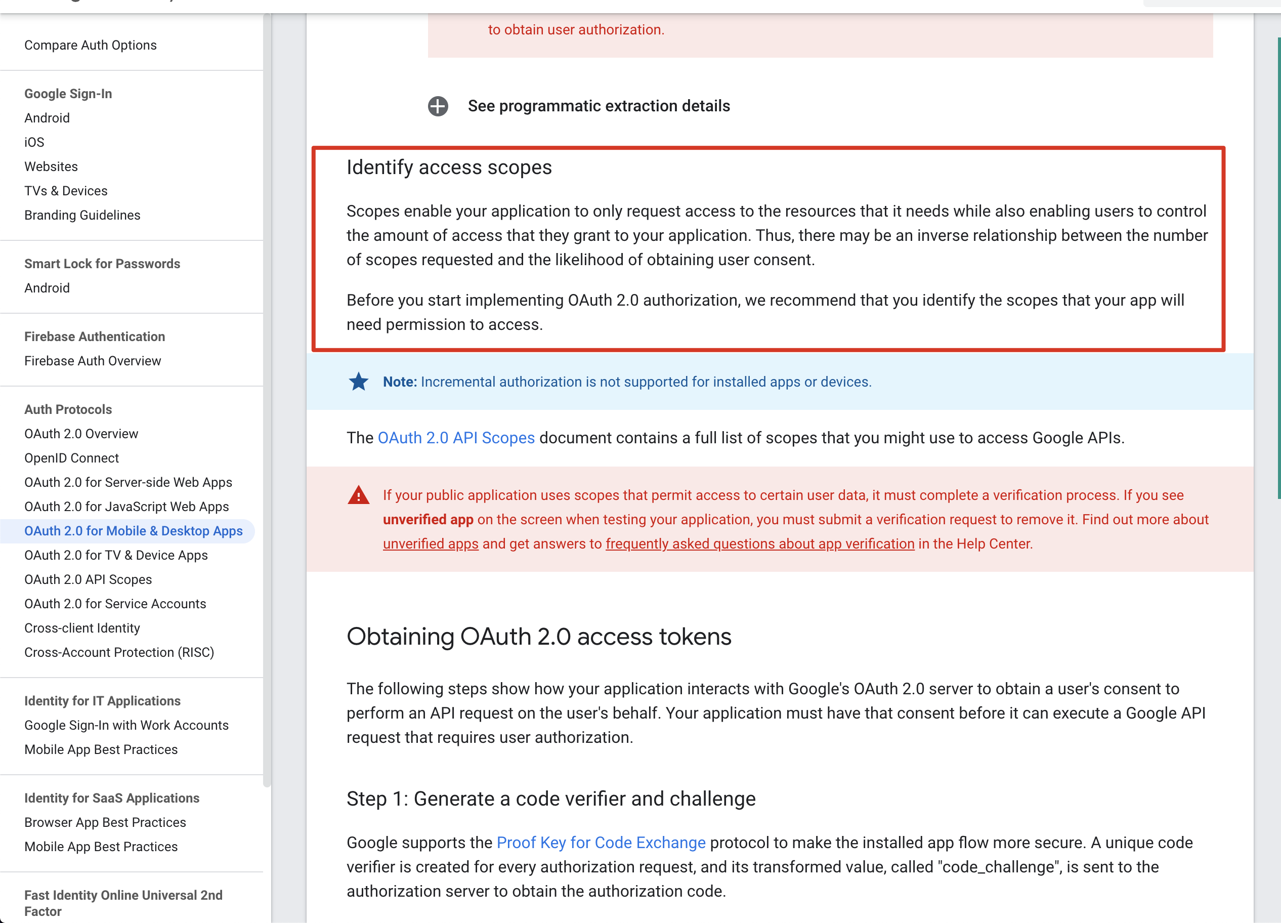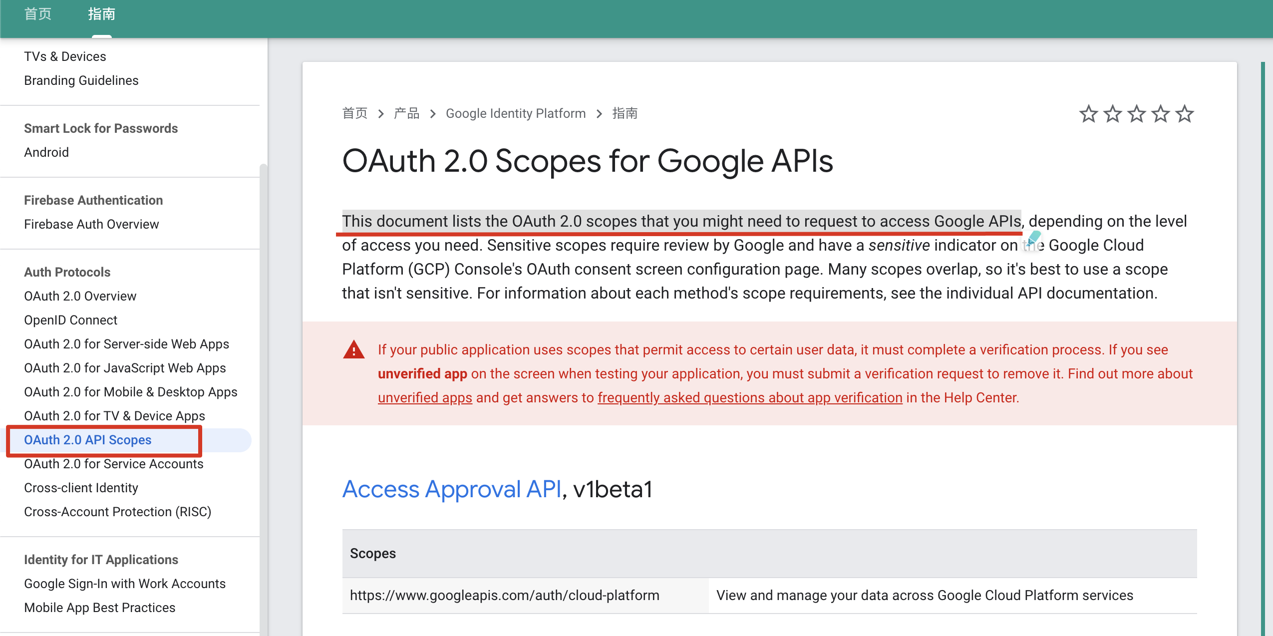 文档继续往下看 (Identify access scopes)