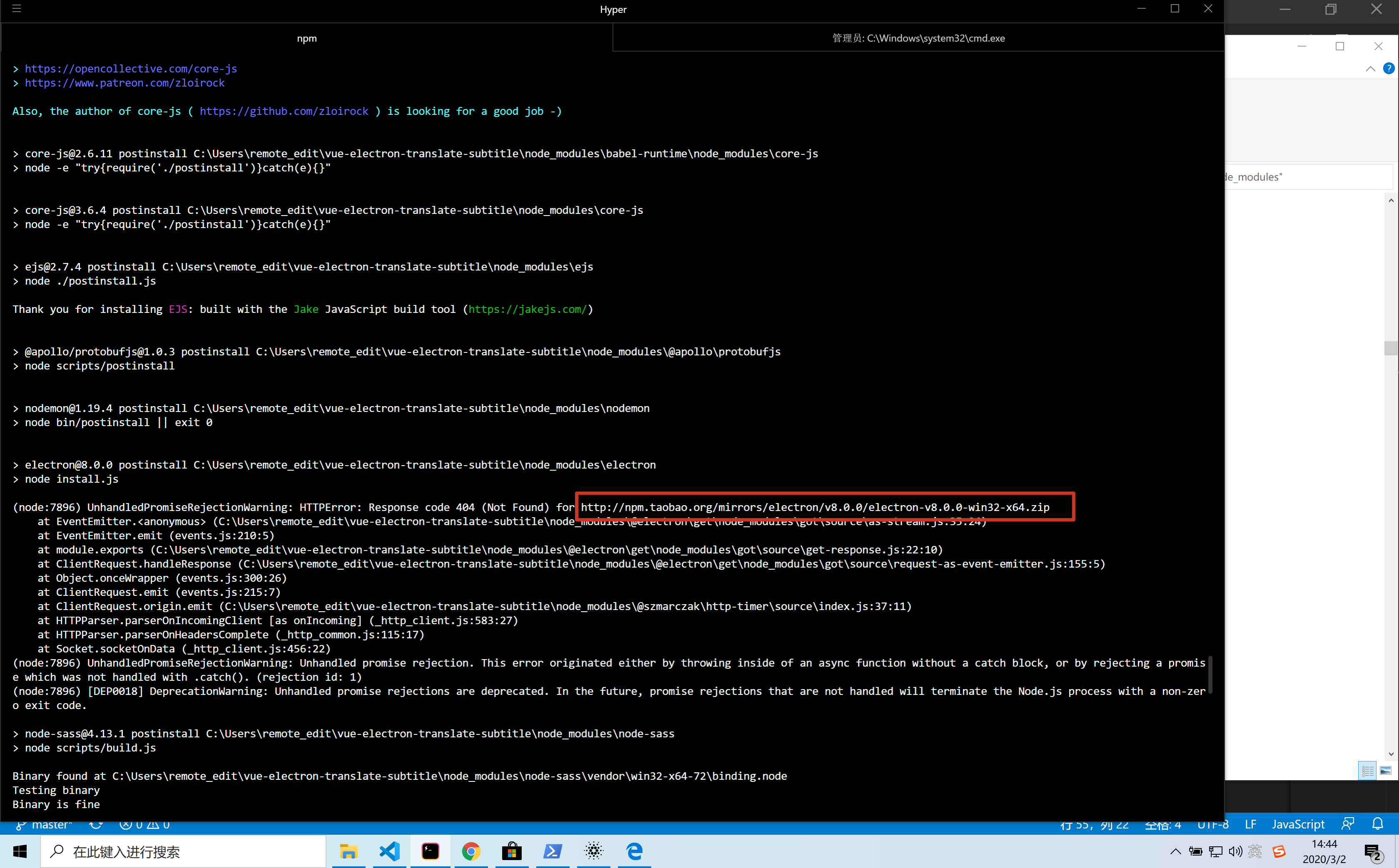 HTTPError: Response code 404 (Not Found) for http://npm.taobao.org/mirrors/electron/v8.0.0/electron-v8.0.0-win32-x64.zip