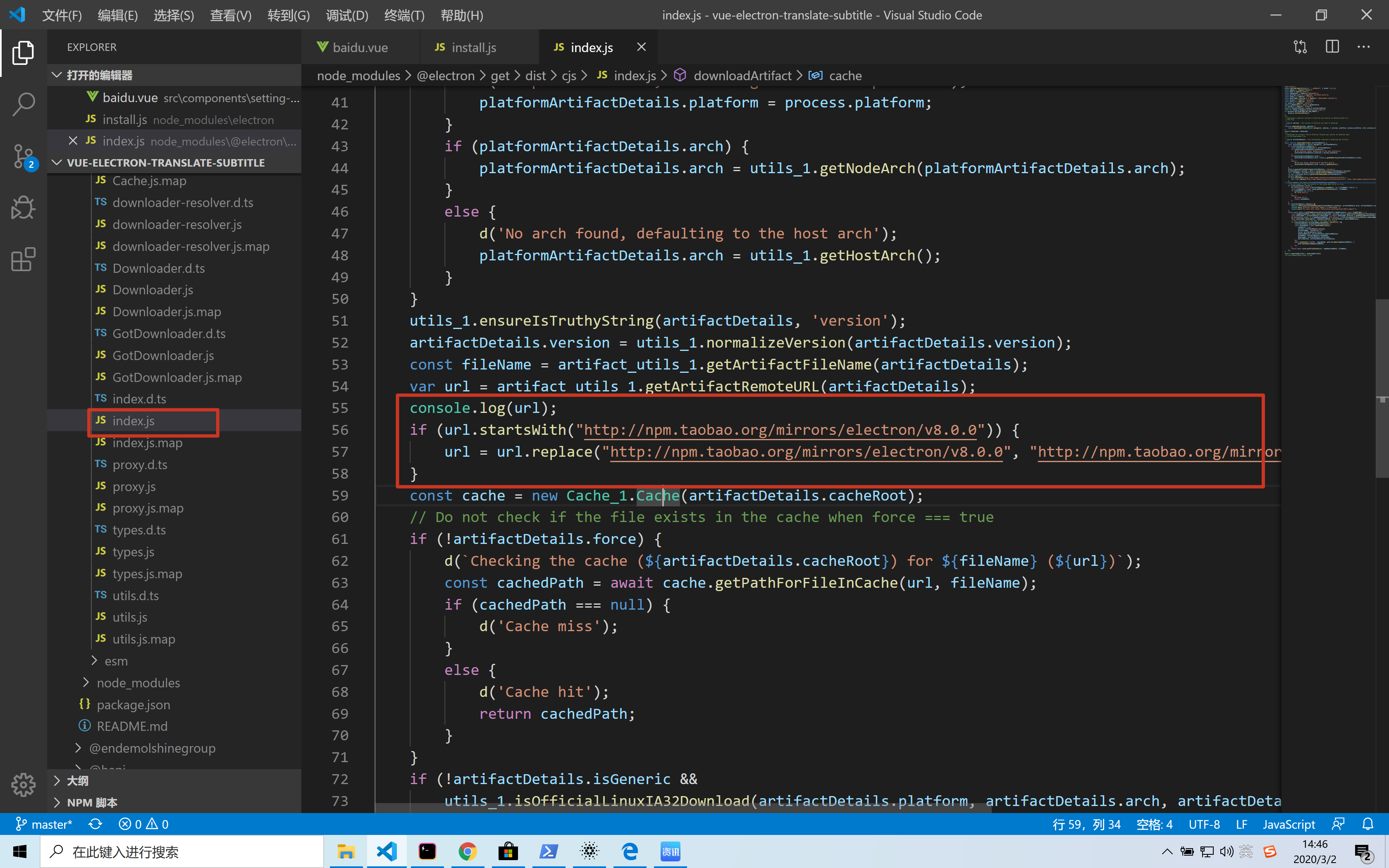 ./node_modules\@electron\get\dist\cjs\index.js文件,修改这里: