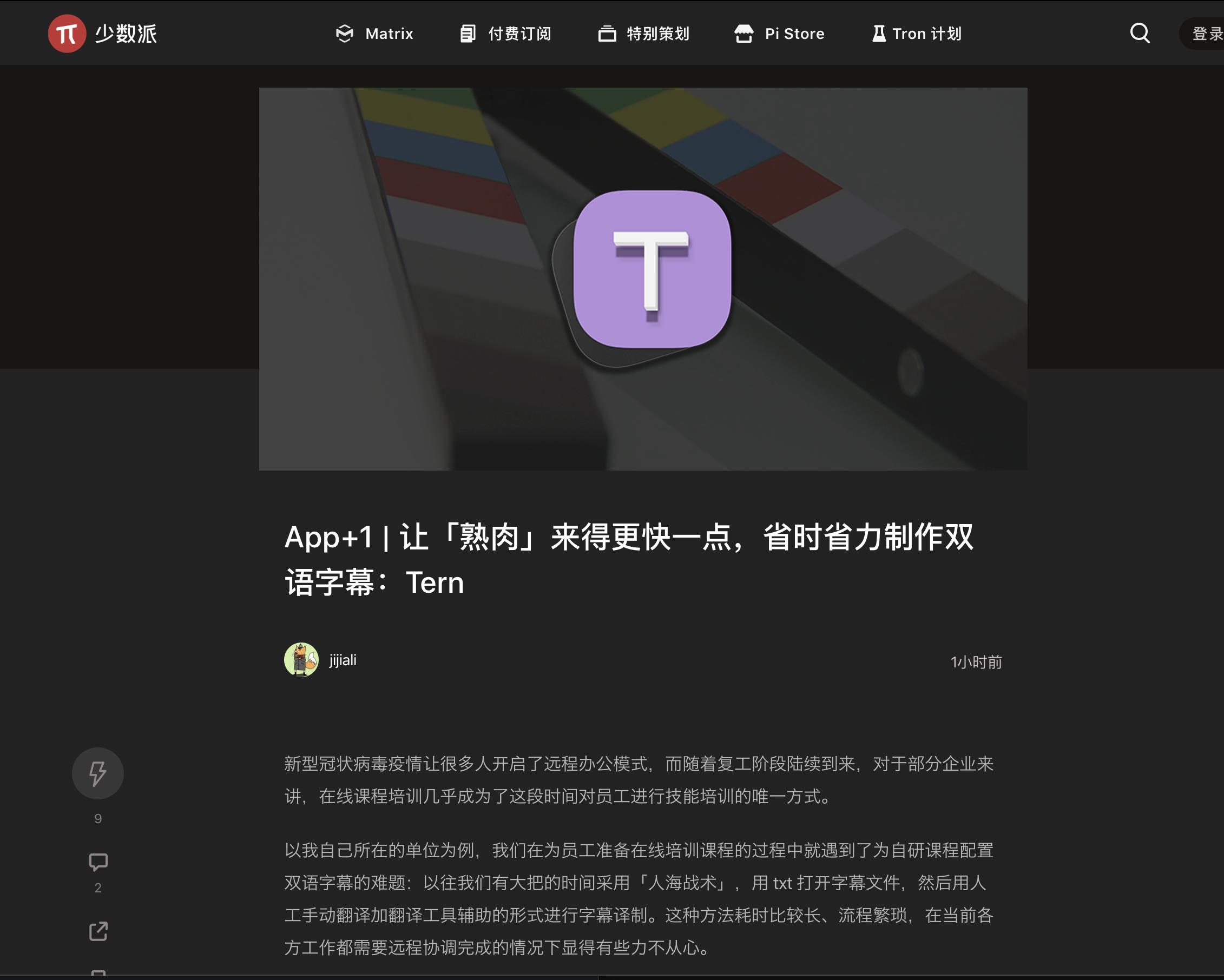 [好消息] 我做的软件被少数派文章推荐了(Tern - 字幕组机翻小助手)