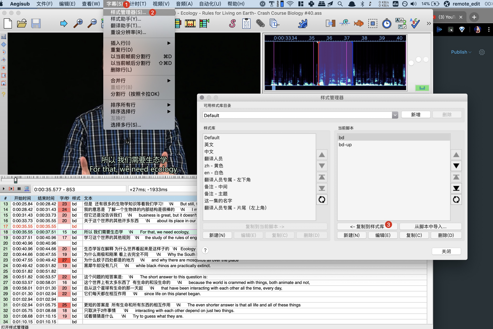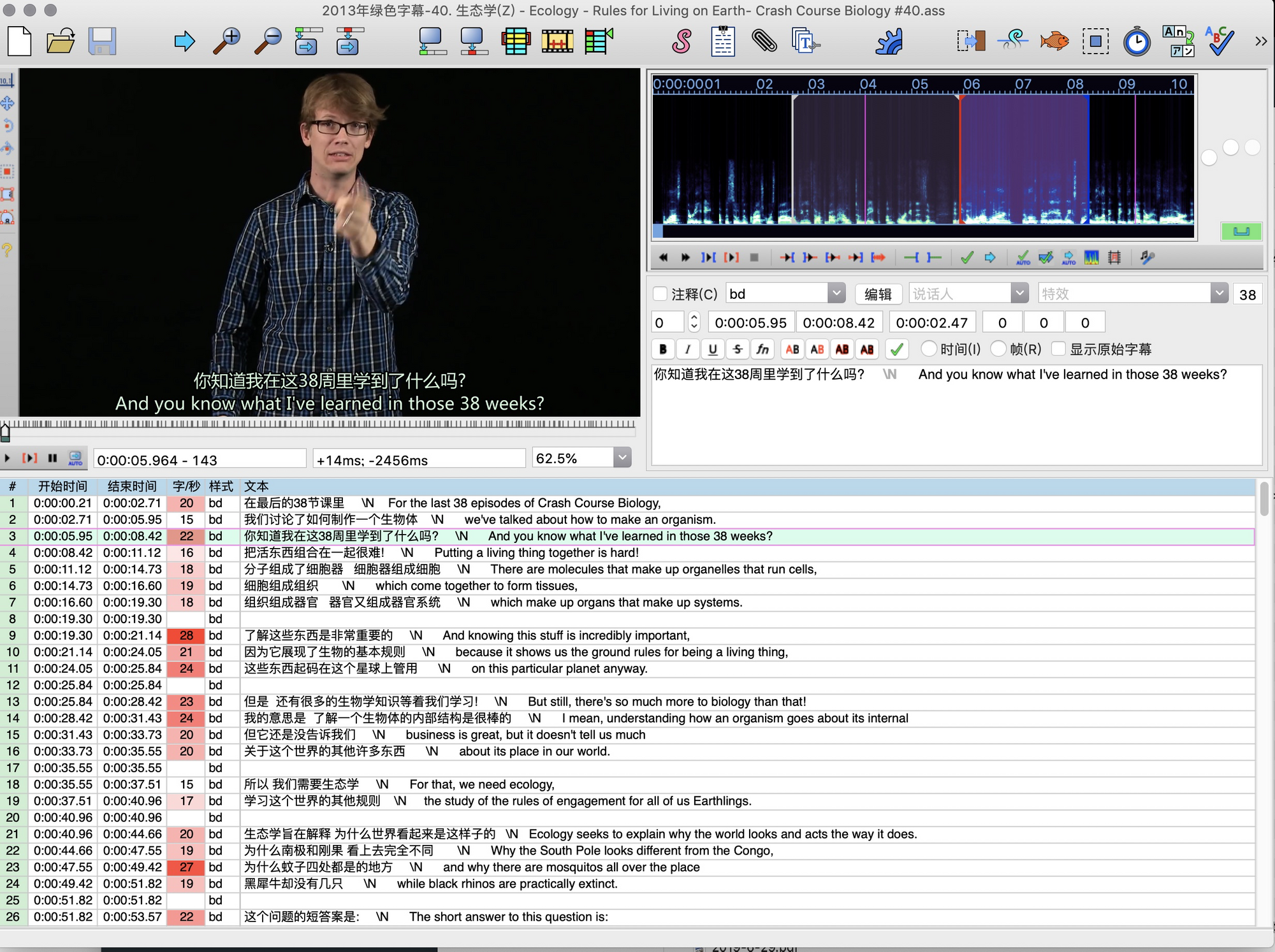 可以打开 "2013年绿色字幕-40. 生态学(Z) - Ecology - Rules for Living on Earth- Crash Course Biology #40.ass"