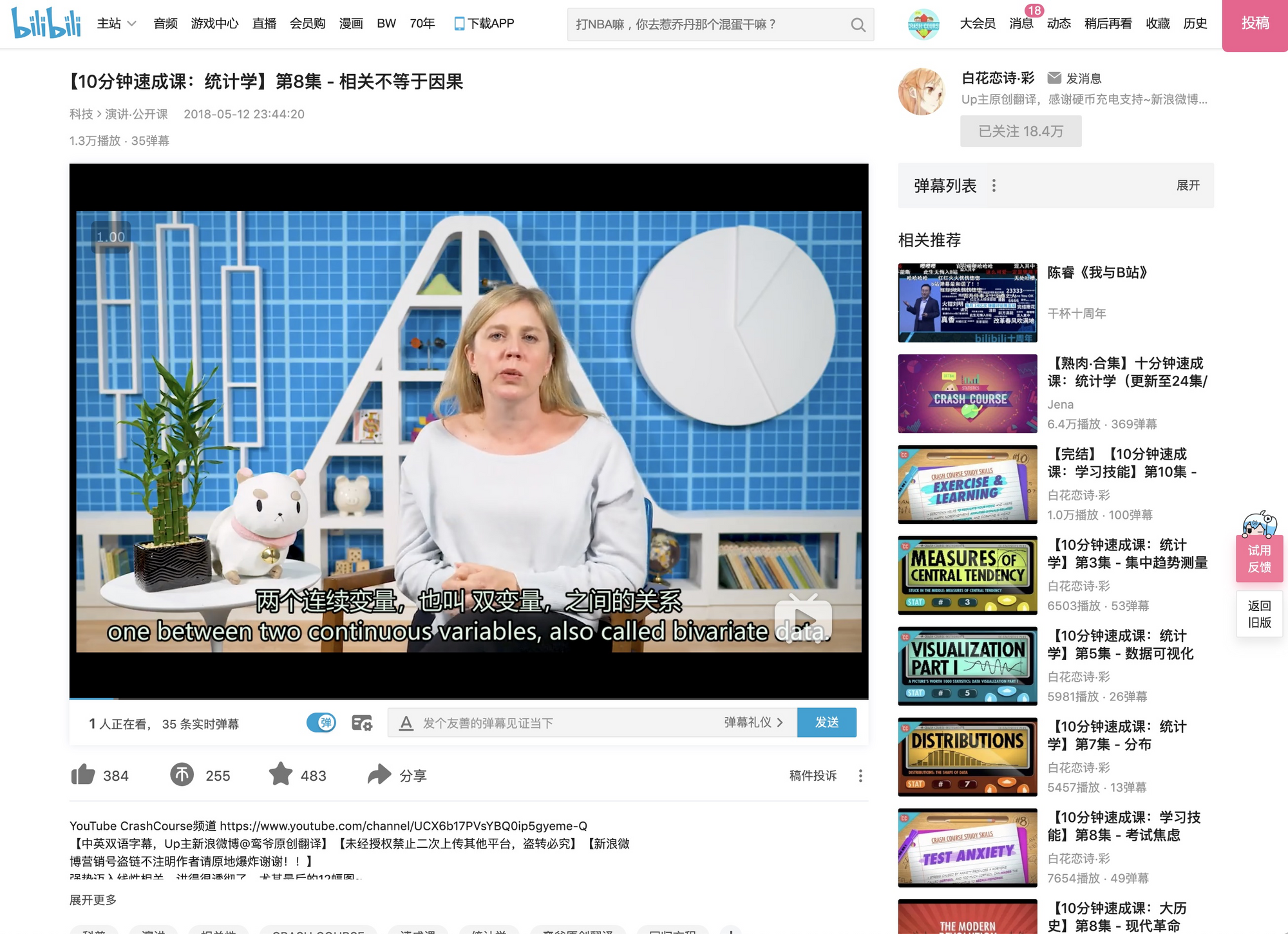 鸾爷在B站有十几万粉丝,翻译的系列也比我多得多。