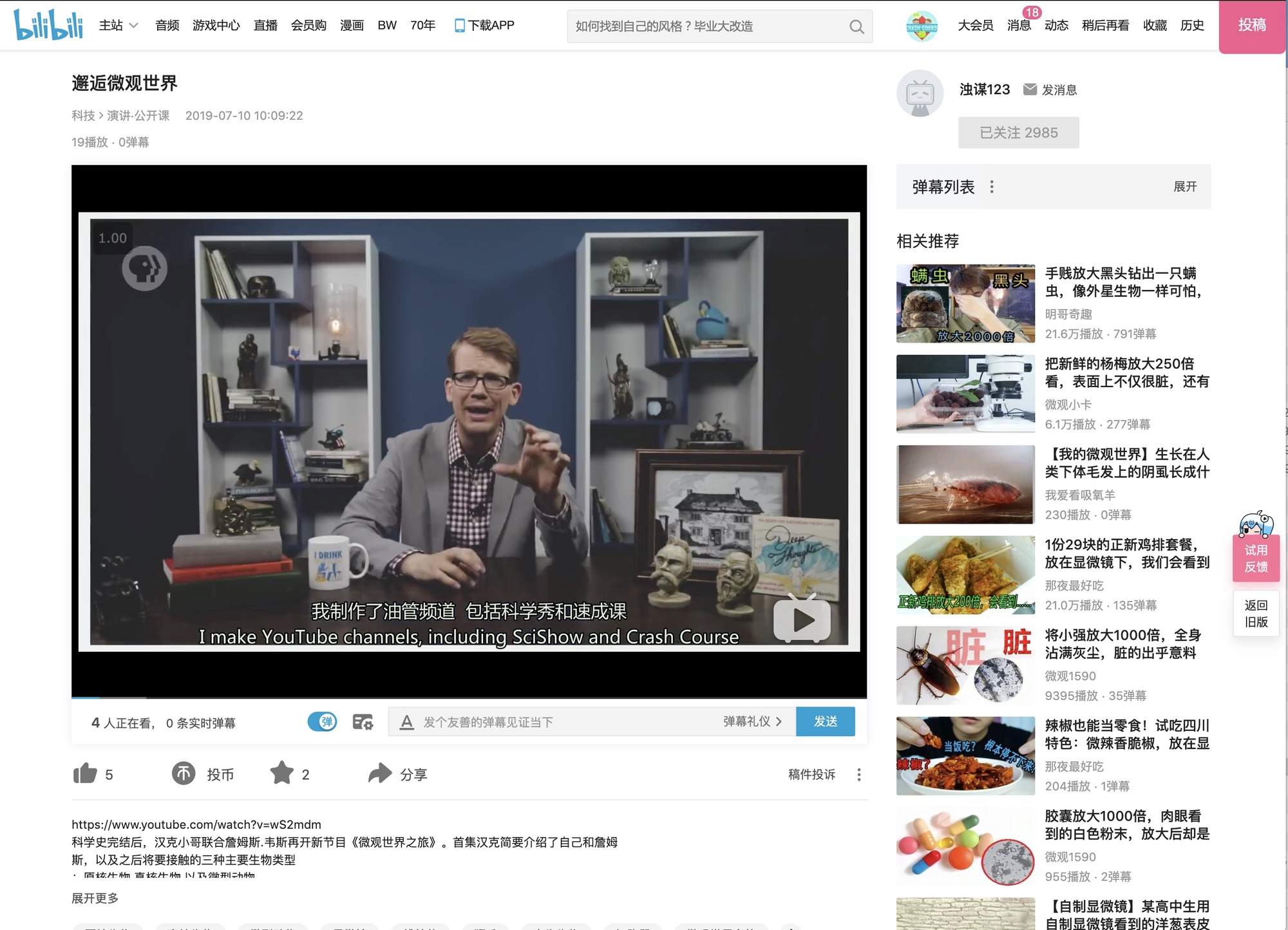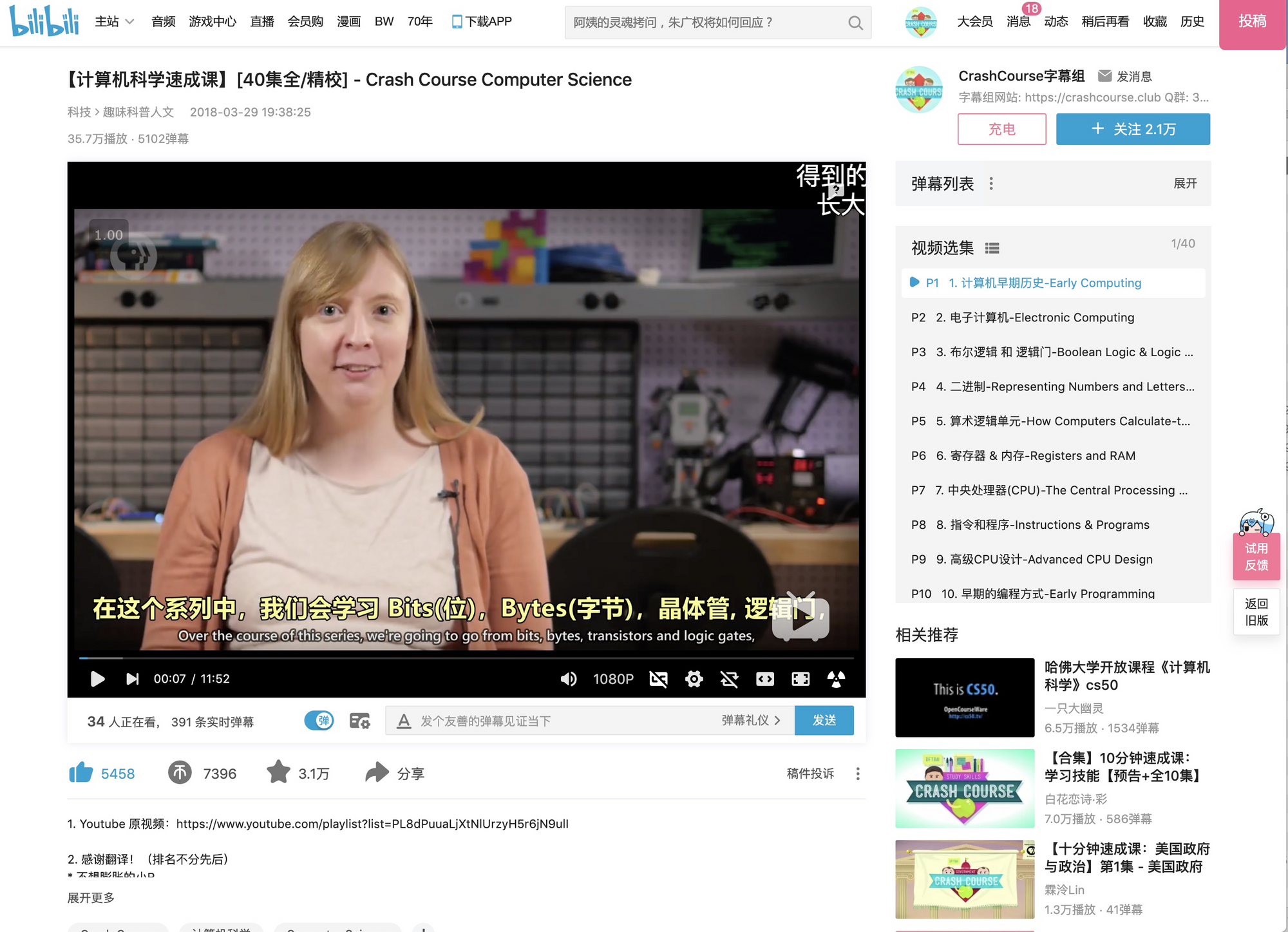 里面把我们 Crash Course 字幕组翻译的视频掐头去尾(视频开头和结尾一般有译者名字)