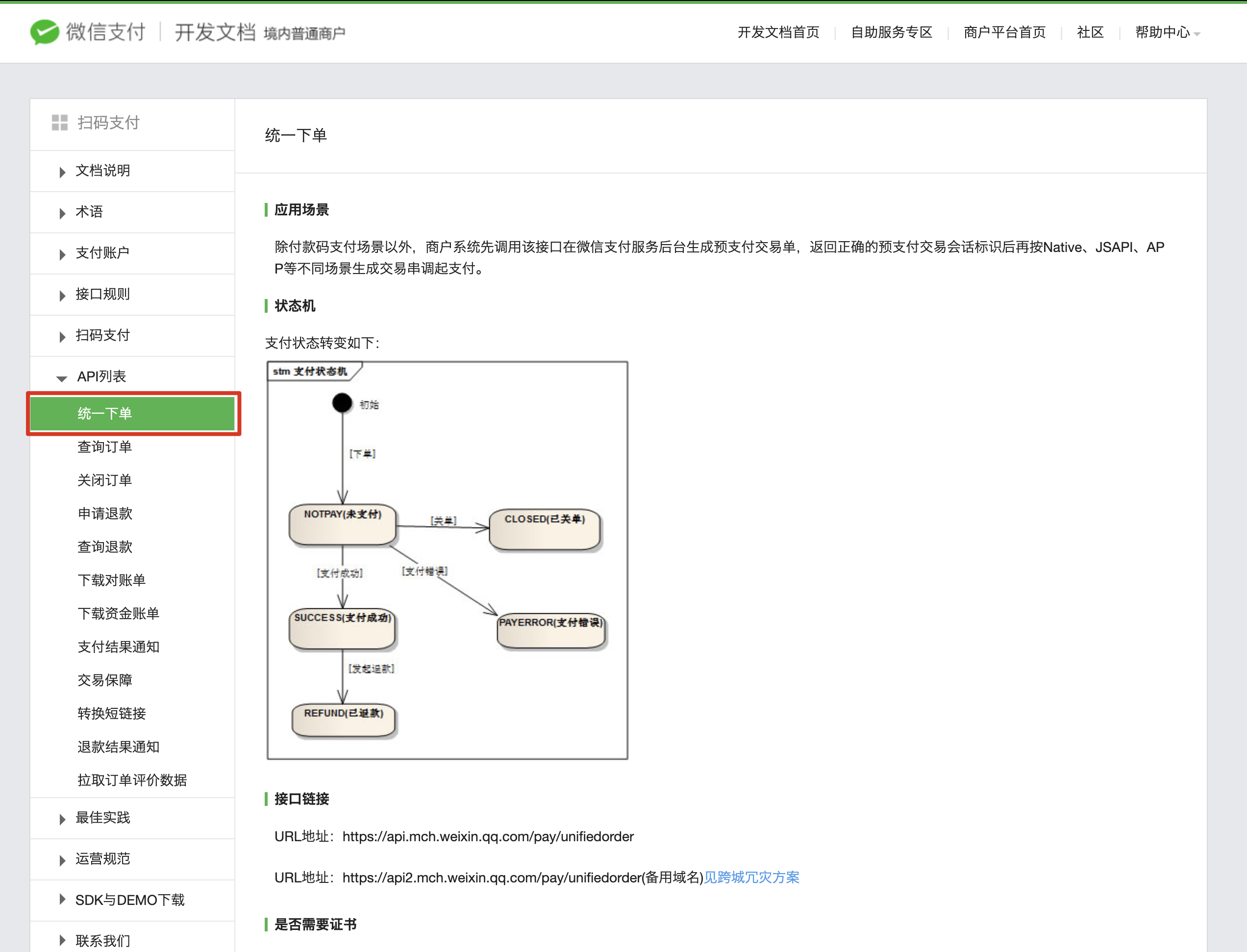 我们使用"统一下单"接口