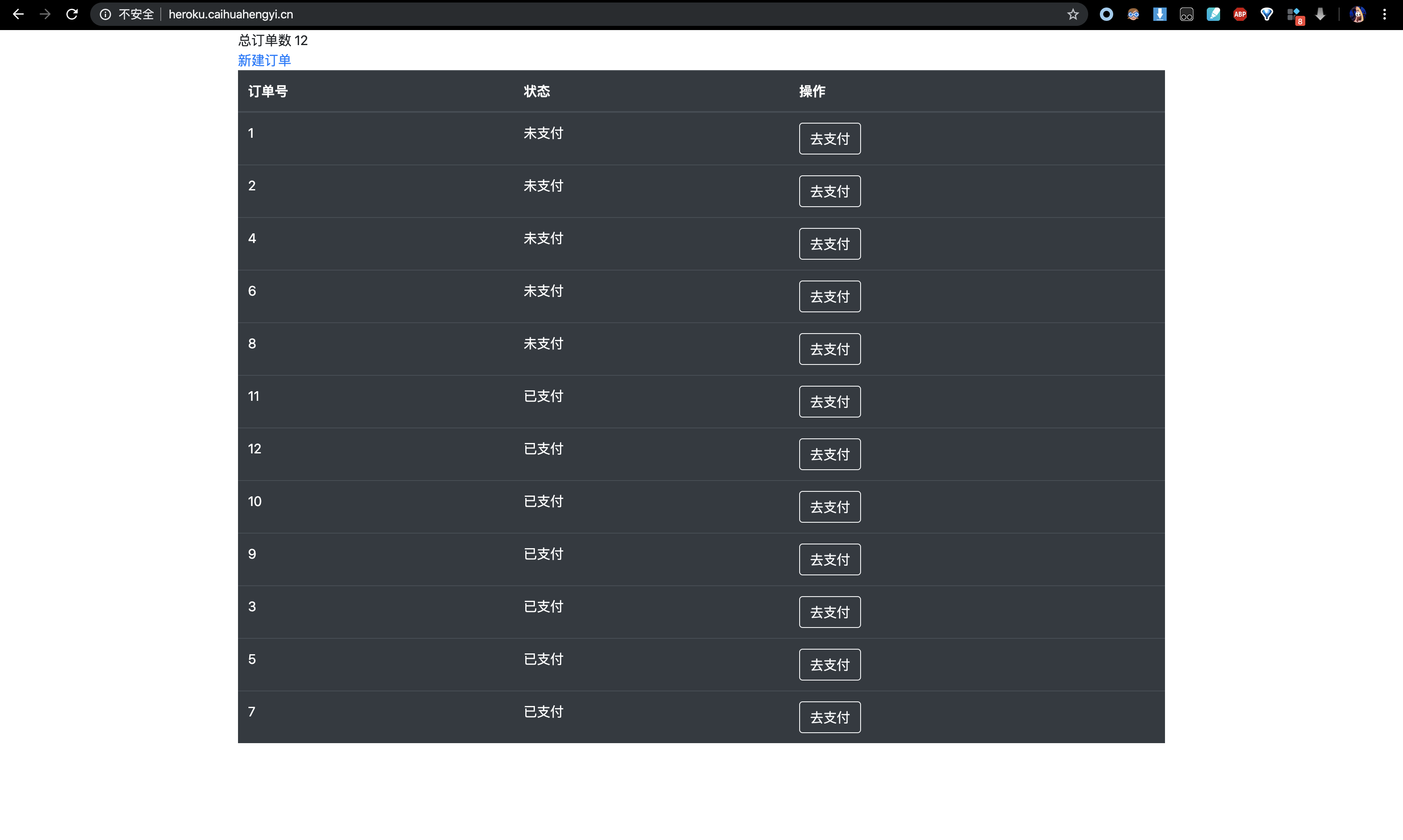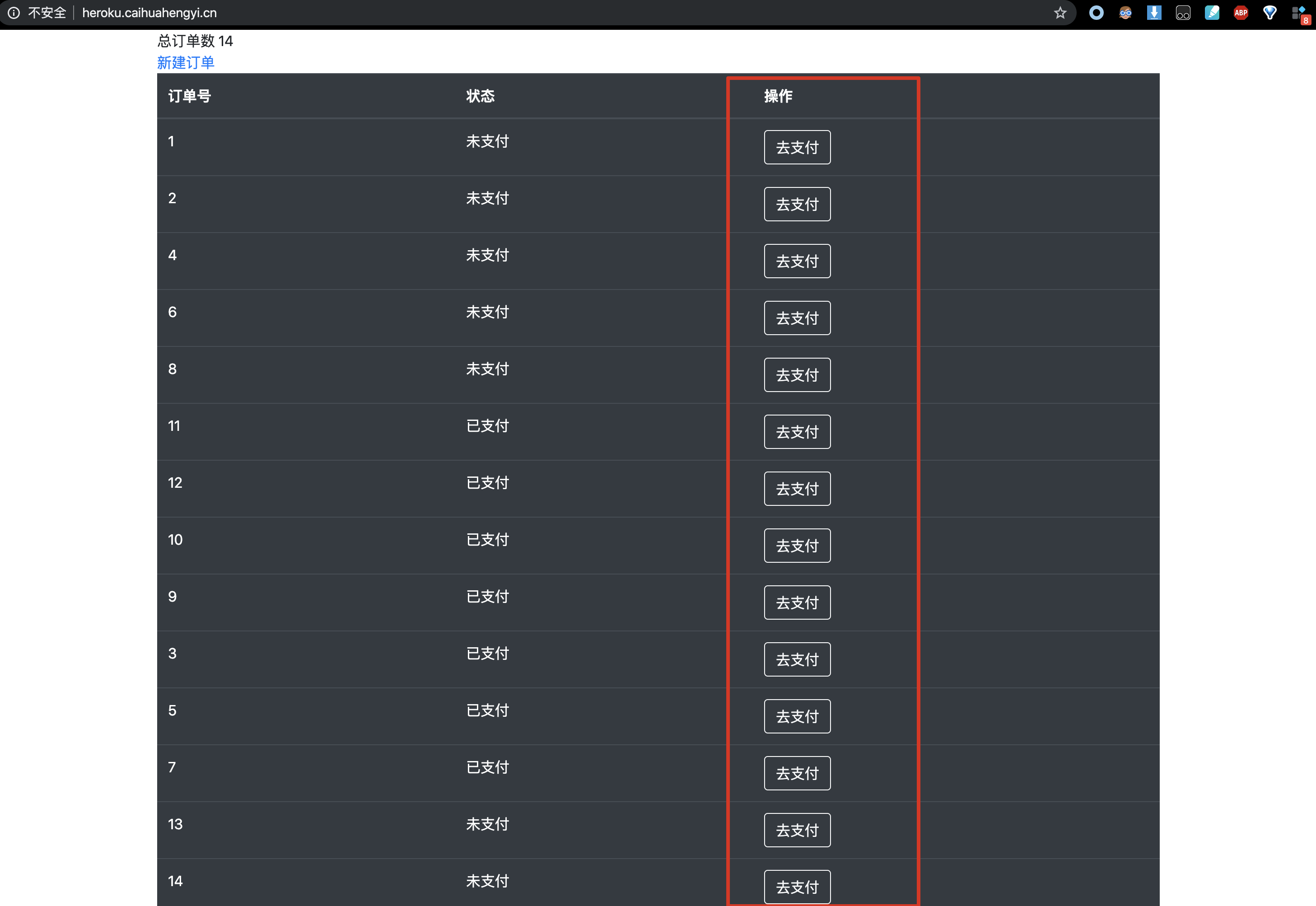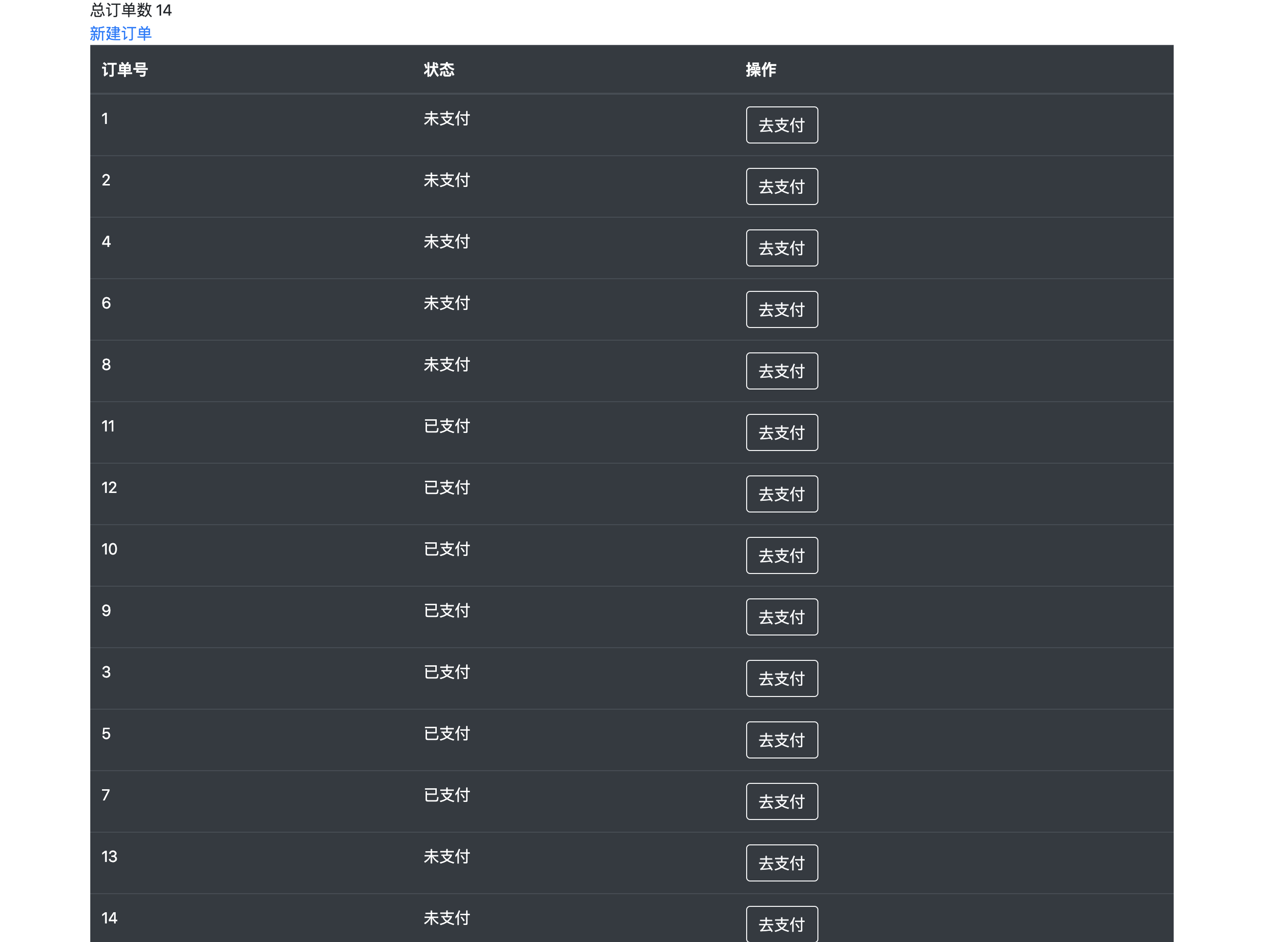 应该会看到刚刚新建的订单,点击"去支付"
