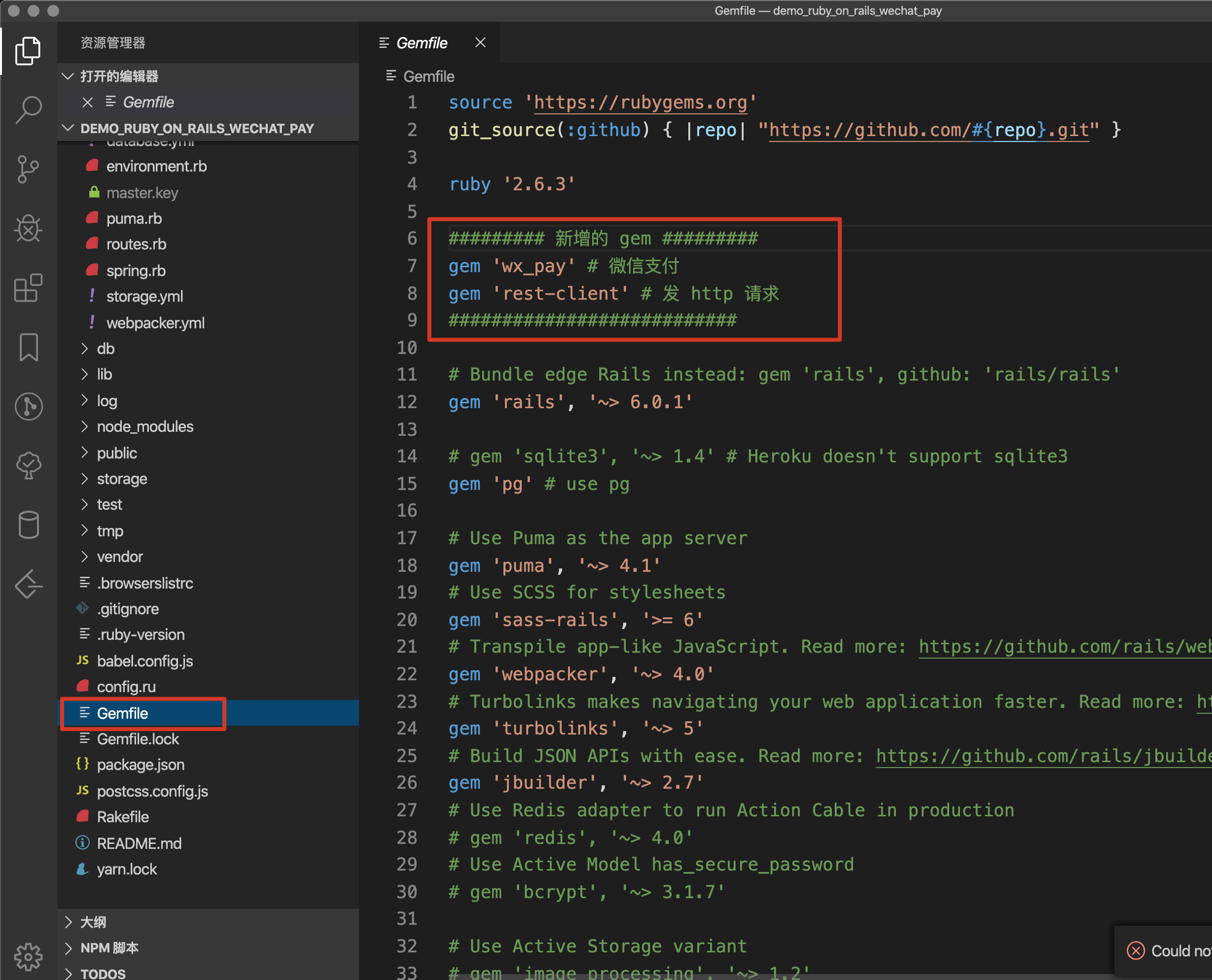 这次用了2个 gem(可以打开 Gemfile 查看)