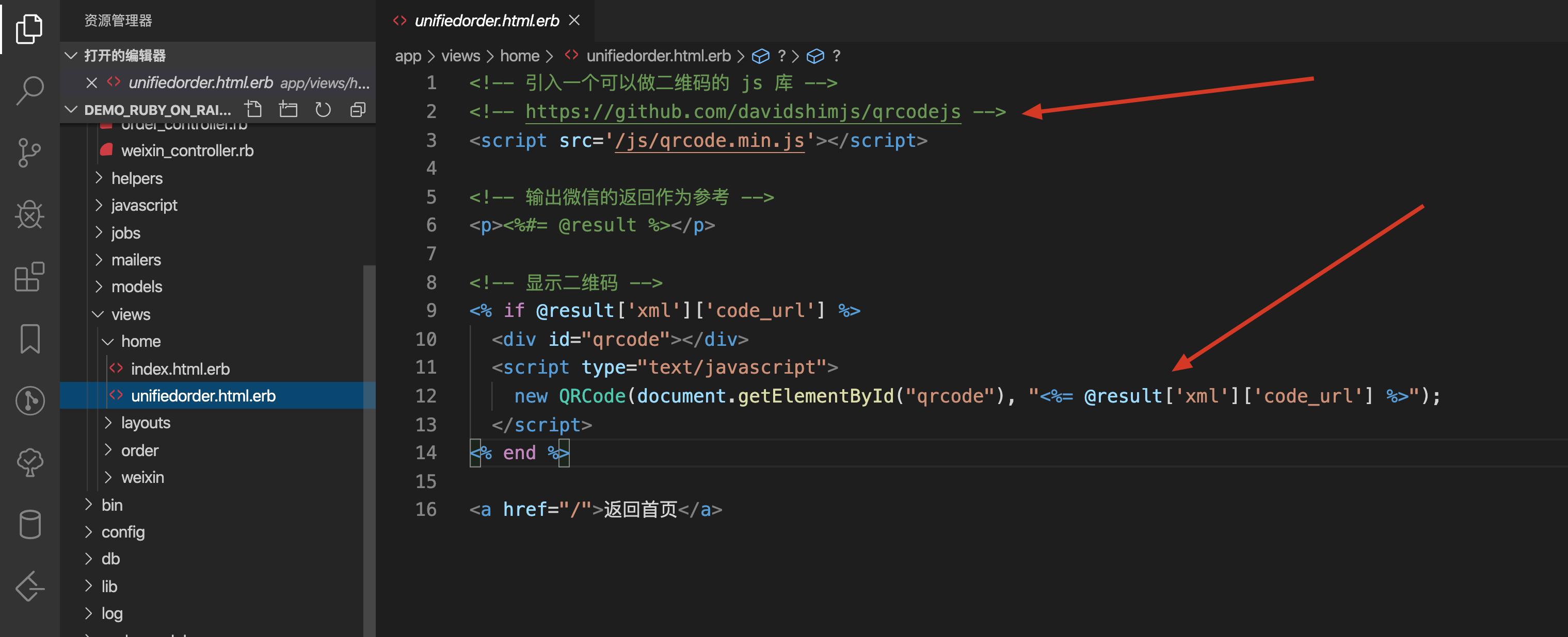 二维码支付的核心代码在 home controller