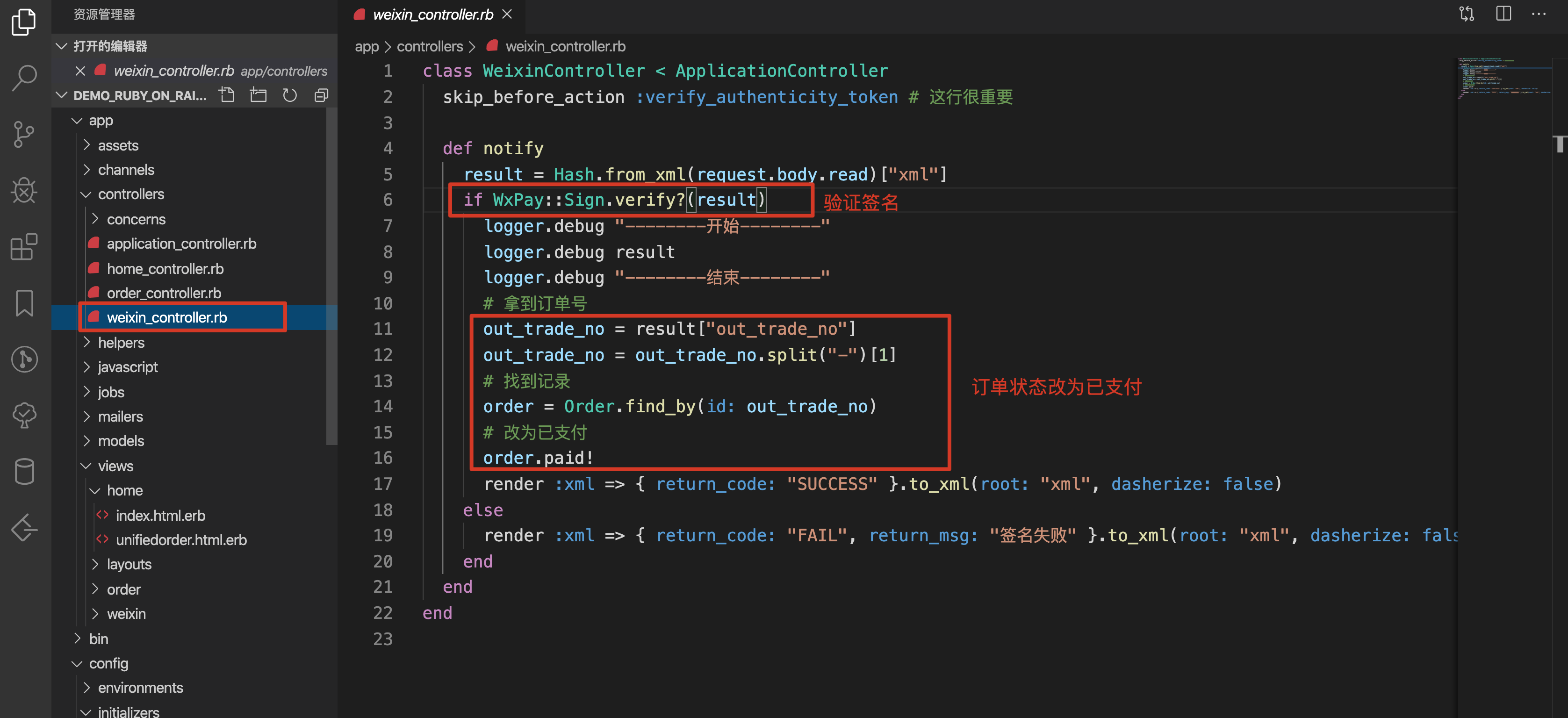 gem "wx_pay" 只用来在回调接口里验证签名,没有用 gem "wx_pay" 的 unifieorder,