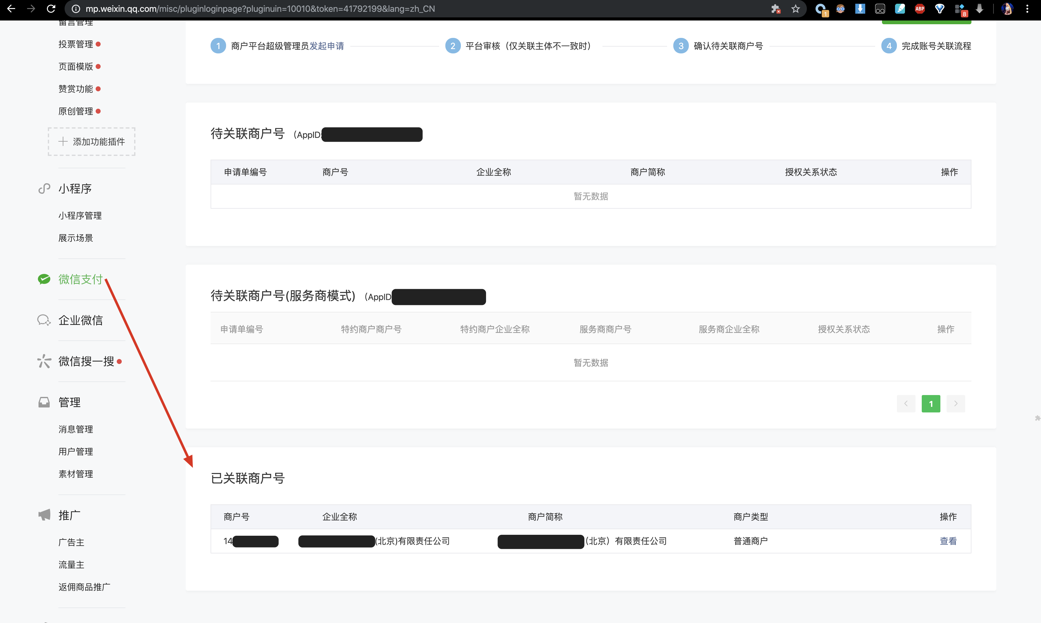 可以确认一下这个公众号和商户号绑定了没有,如下图: