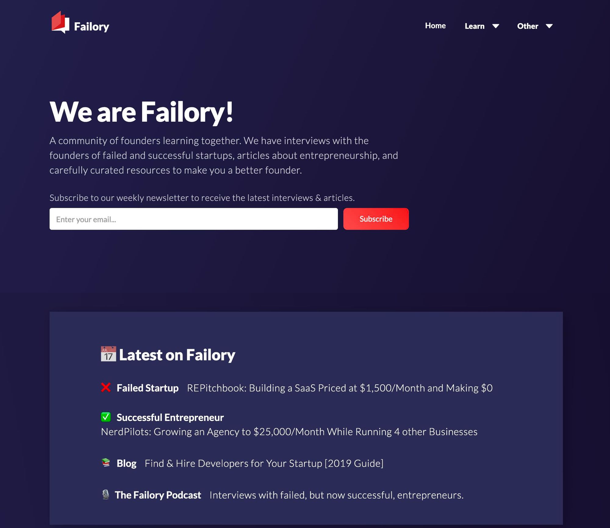 在 Failory 这边读一些 "失败" 的故事也很不错。除了失败的故事,目前这个站也在做一些其他内容。