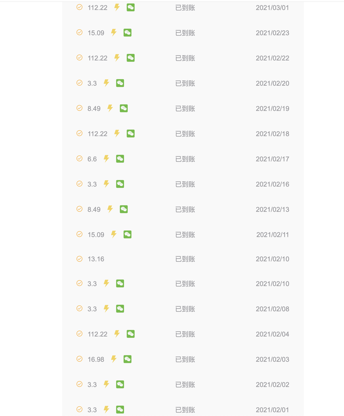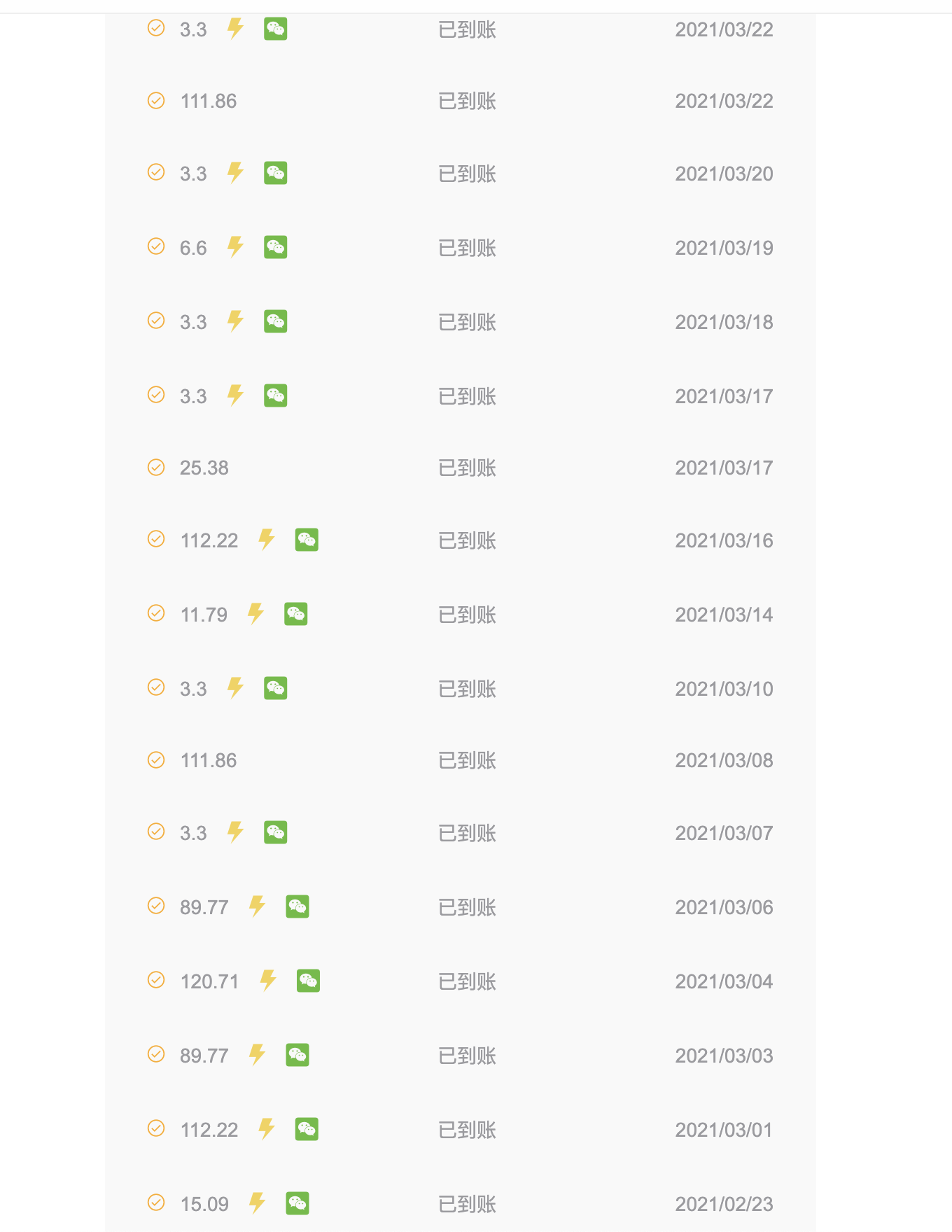 注:有"闪电小图标"代表是自动的每天提现。