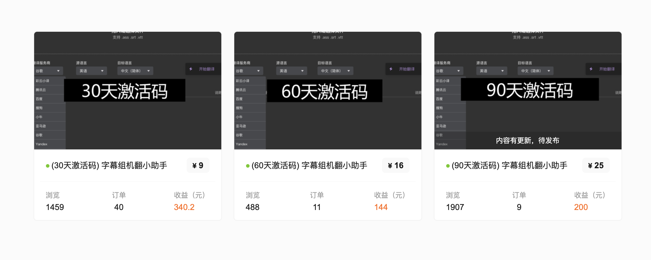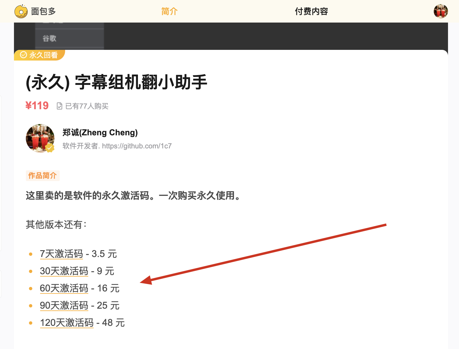 收入来源:卖软件的专业版,按照时长分成了几个不同类别