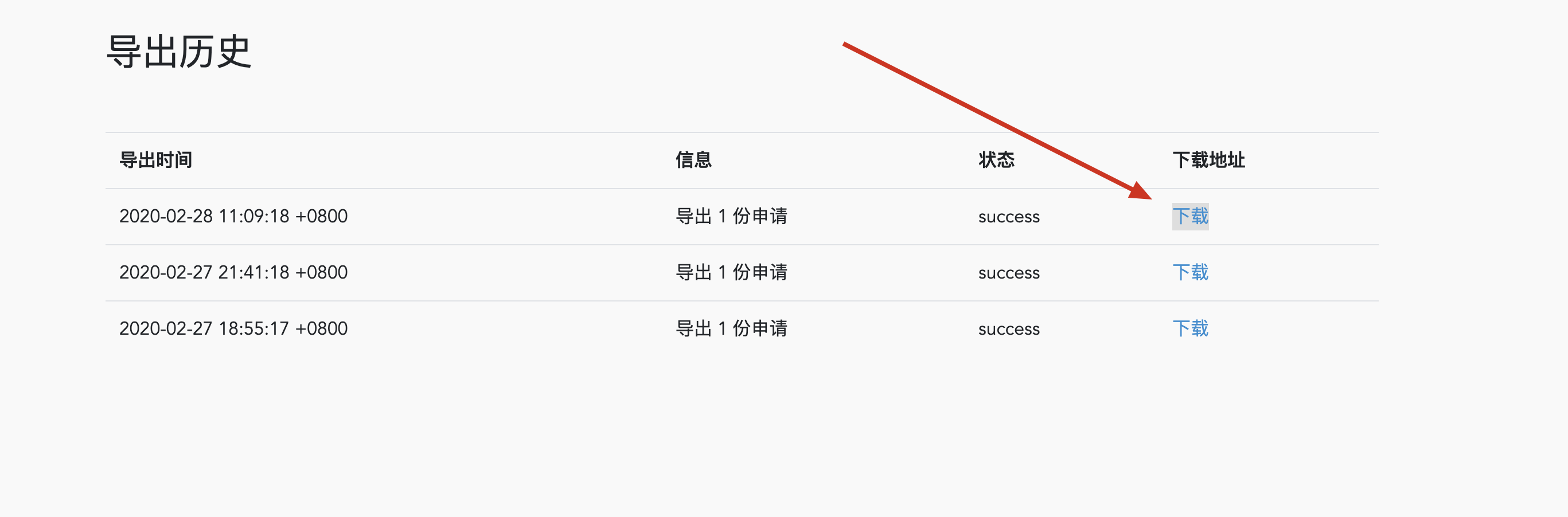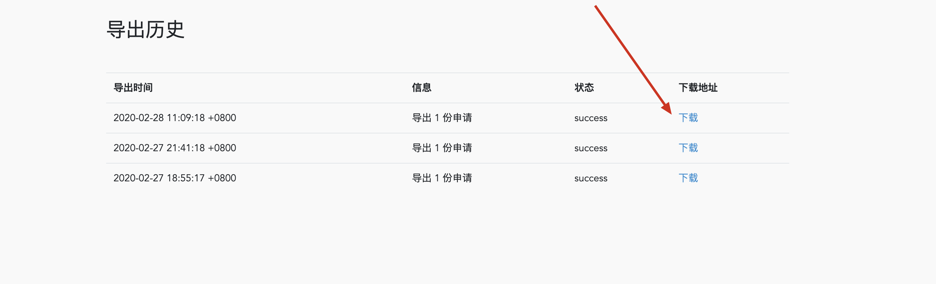 http://localhost:3000/export_history/12/download - (第12行) 返回的数据里面有个 download_link