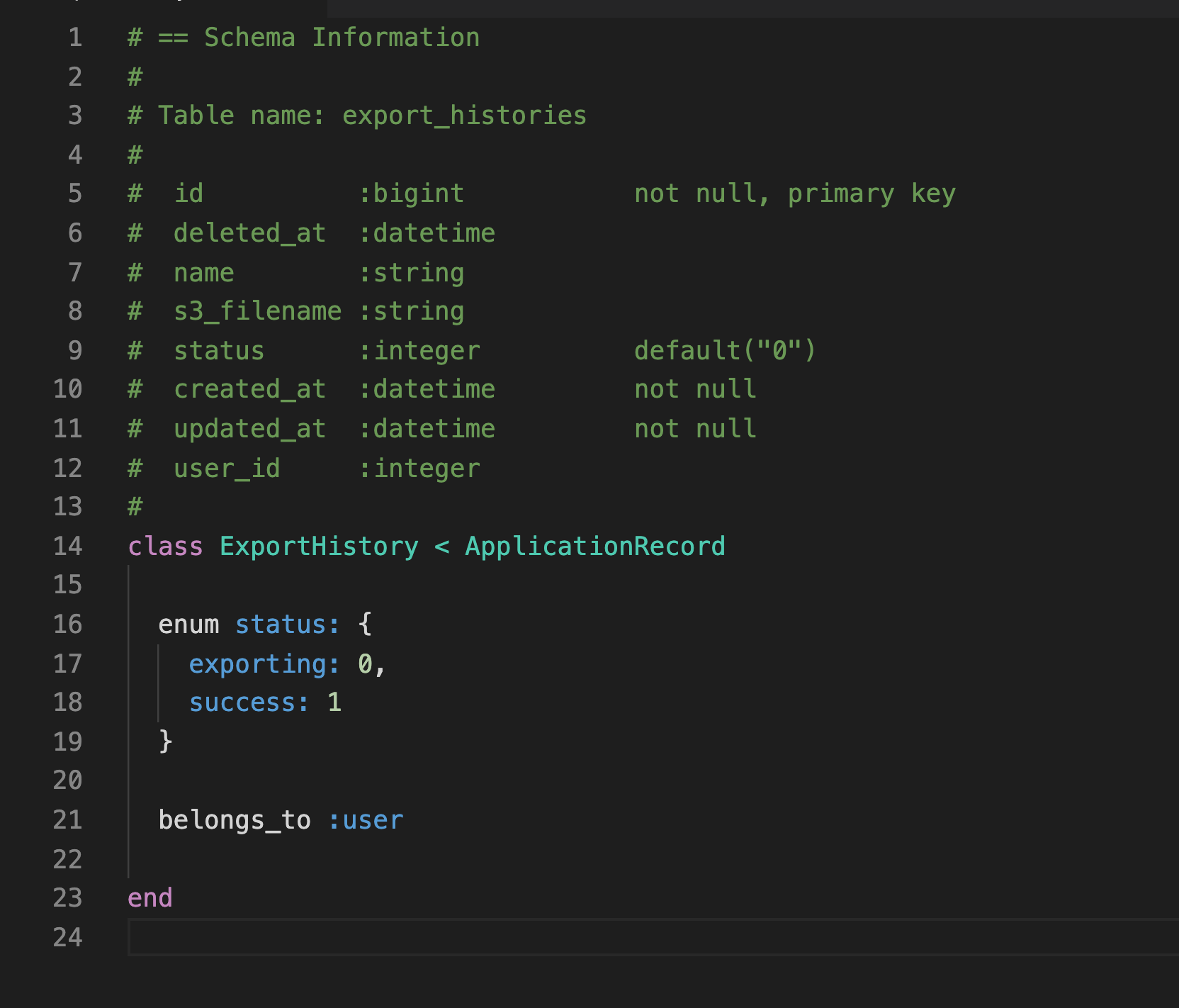 以下是 ExportHistory Model 的内容