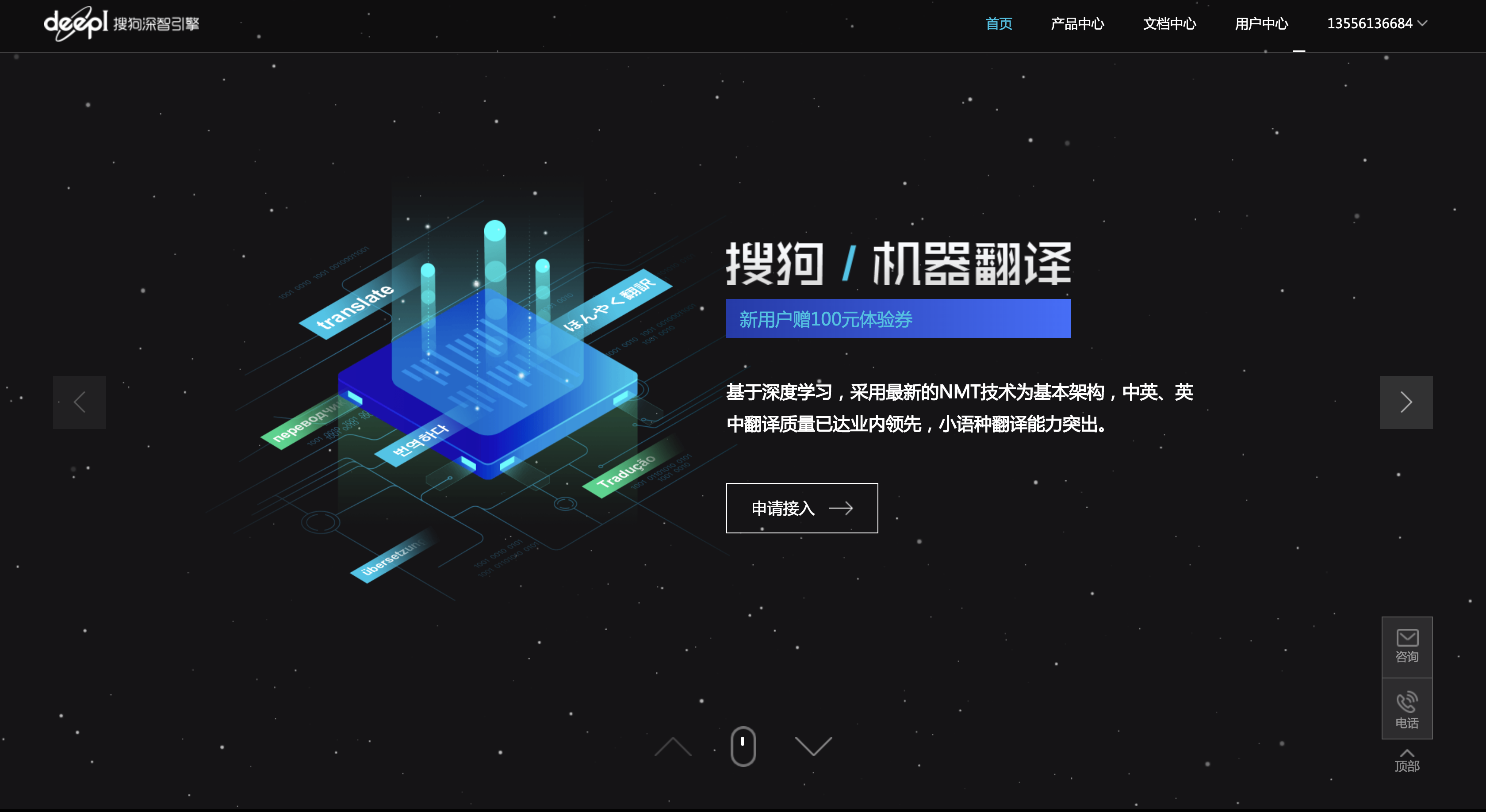 搜狗翻译 API 指的是"搜狗深智引擎"