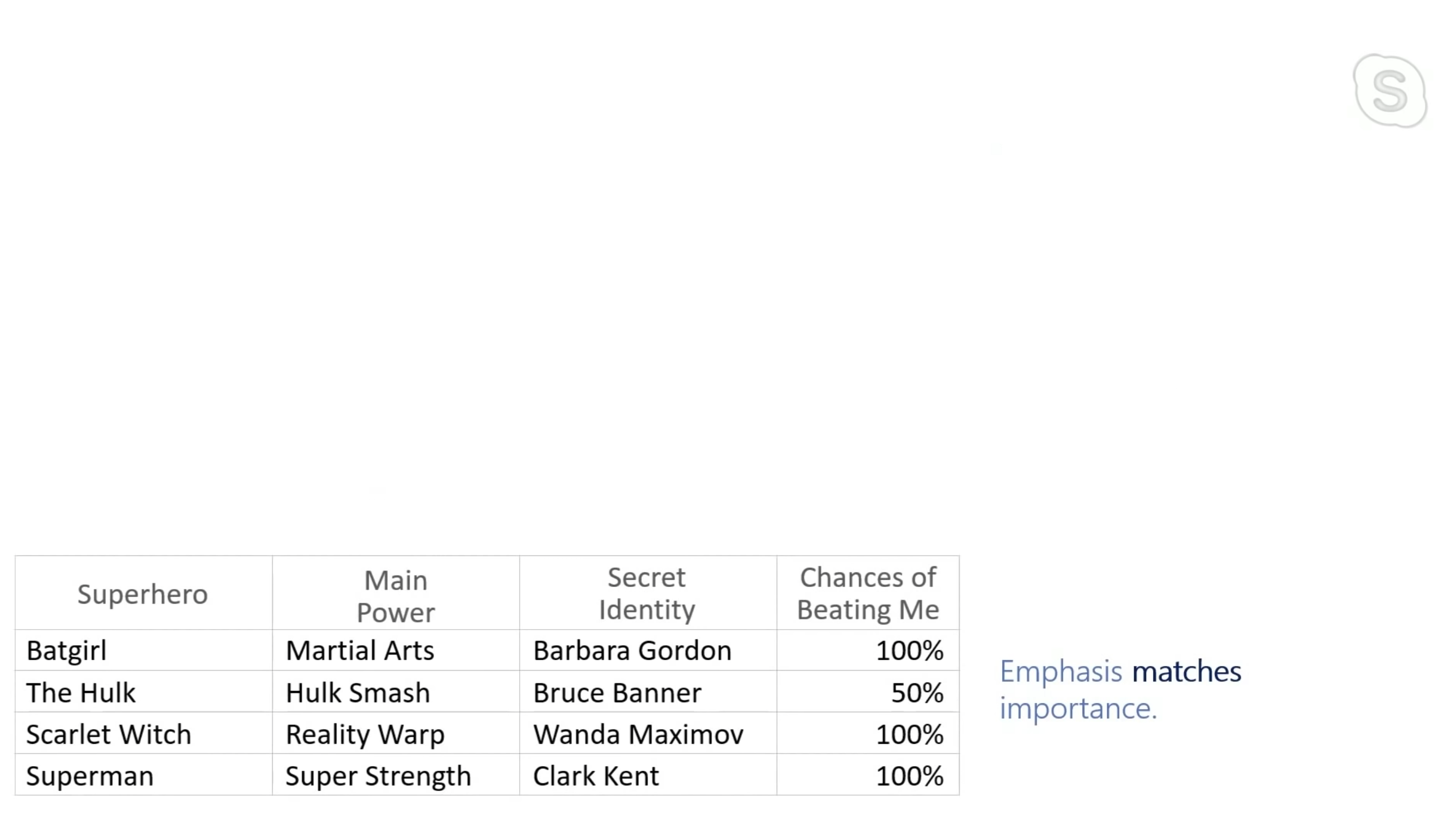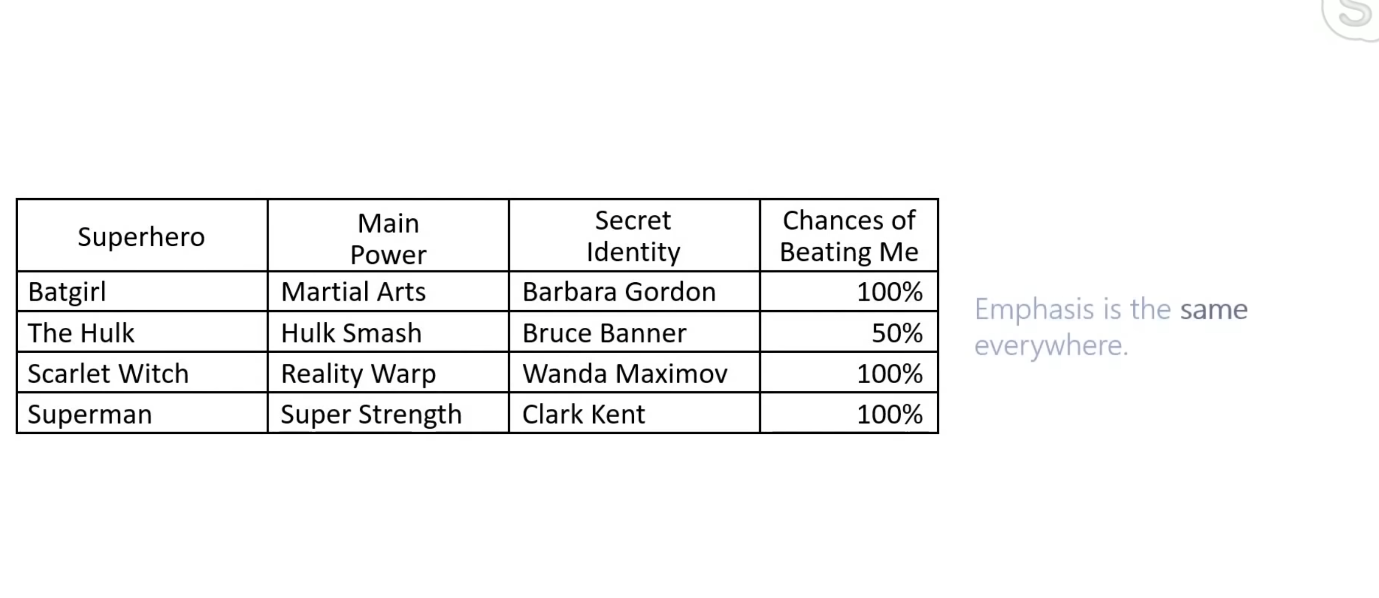 下面这个表格,文字和边框宽度是一样的,没有重点