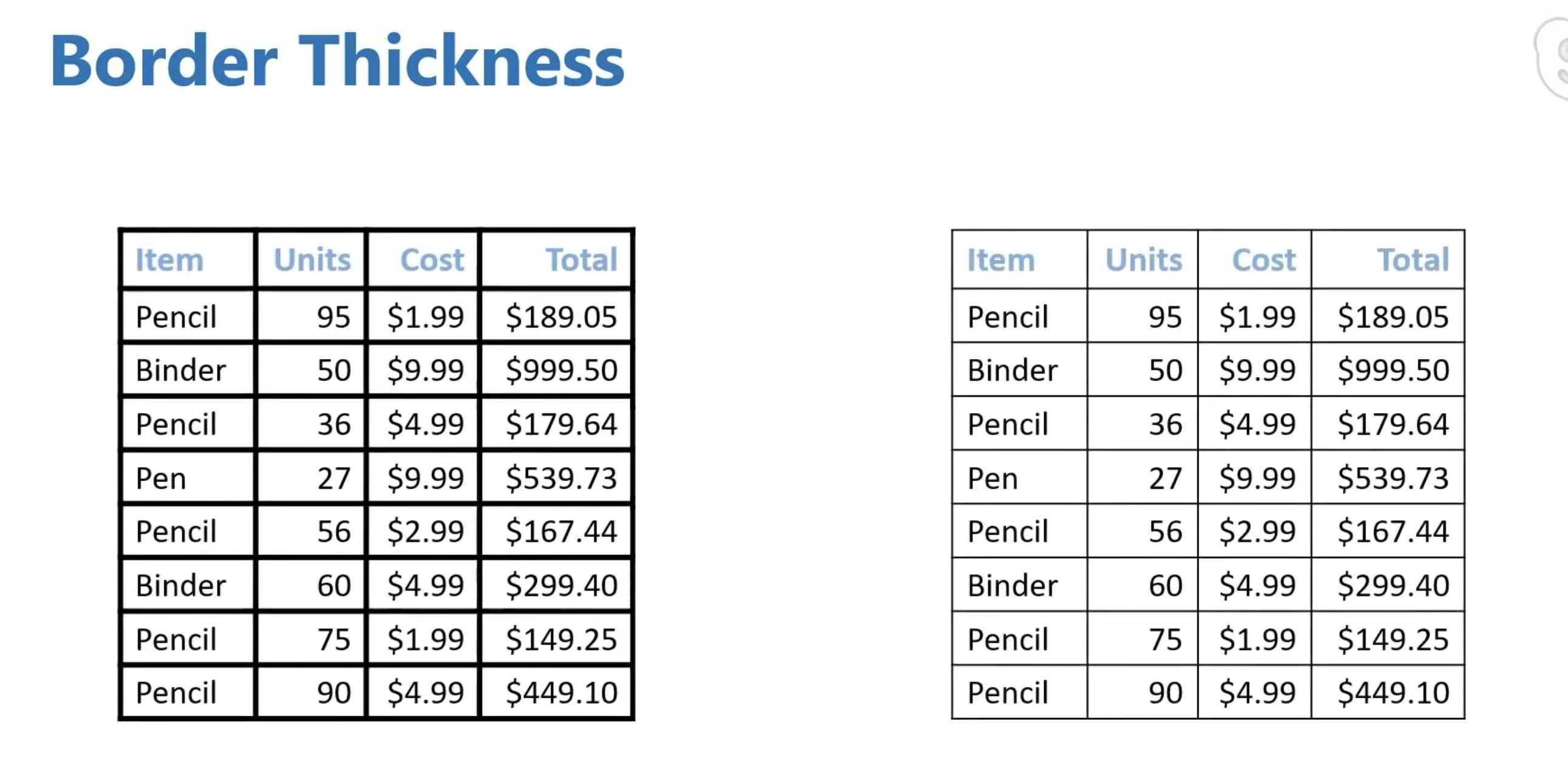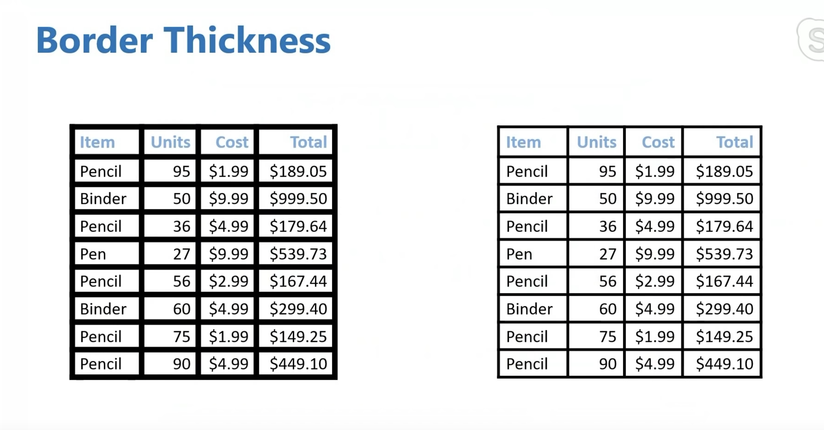 接下来看表格的边框宽度。