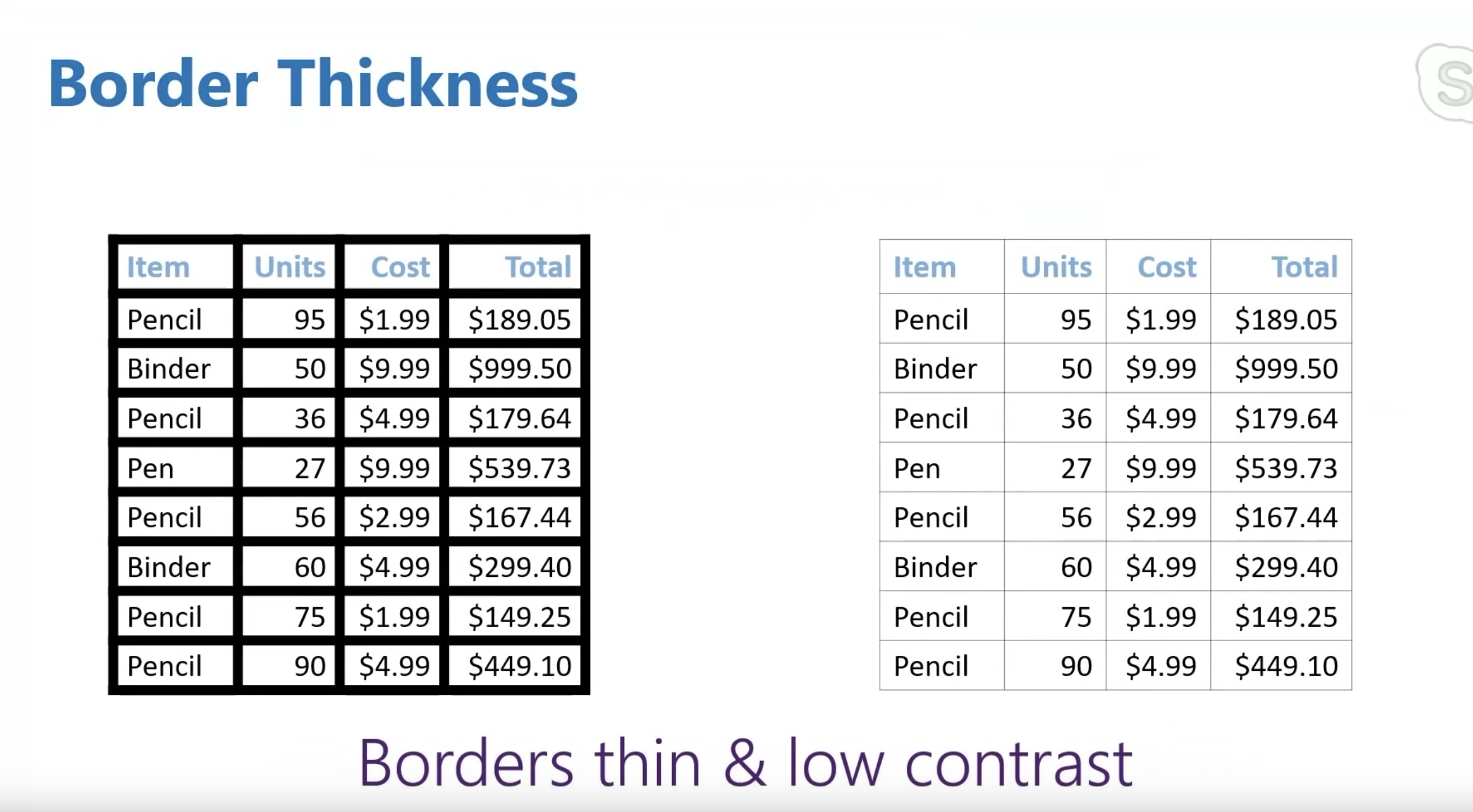 结论:边框应该细,对比度应该低